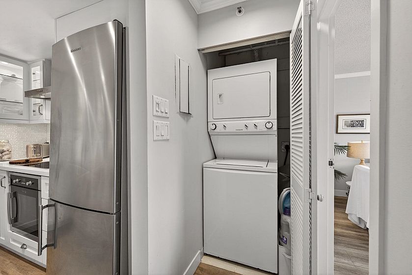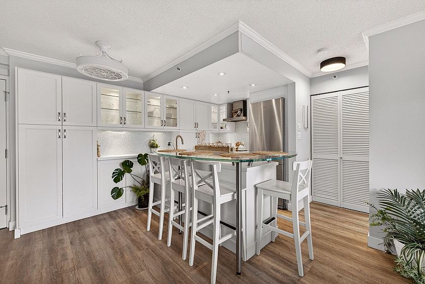 Revel in sophisticated urban living at the Carlyle located on Vancouver’s luxurious Alberni Street. Renowned shops, boutiques & Vancouver’s finest Restaurants are located at your doorstep plus the Seawall just a short walk away. This 2 bedroom 917 sq.ft. South facing home, offers pleasant city views from the covered large balcony & has been tastefully updated. Enjoy the Beautiful custom kitchen with Stainless Steel high end appliances, relax in the seamless open concept living space, bedrooms that have separation for privacy & in-suite laundry. The building has amazing amenties including an on site caretaker for peace of mind, a welcoming outdoor courtyard with outdoor kitchen facilities, a full length indoor pool, hot tub, sauna and gym. Well managed beautiful building to call home.