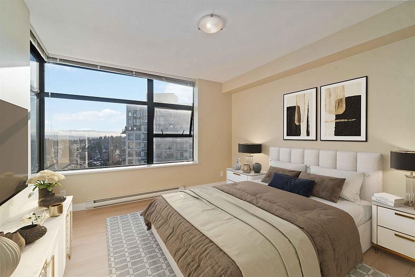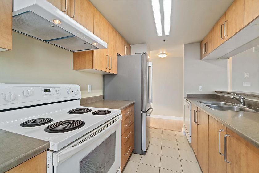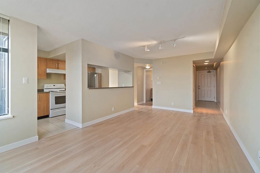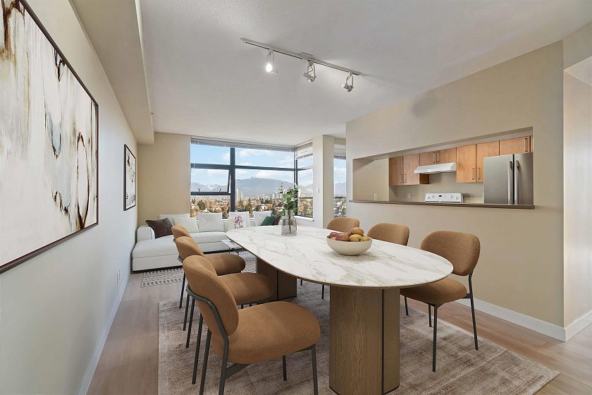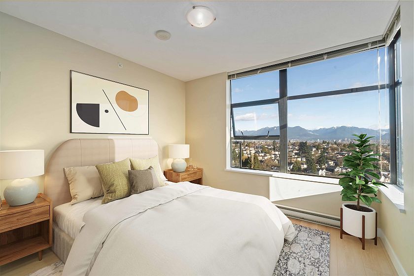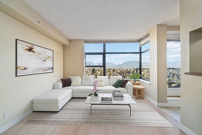 Welcome to this beautifully updated 2-bed, 2-bath corner unit offering panoramic north shore mountain views. Recently renovated, this bright and spacious condo features fresh paint, new engineered hardwood flooring and baseboards throughout, creating a clean and contemporary living space that’s truly move-in ready. Enjoy a functional open layout with large windows that flood the home with natural light. The generous living and dining areas are great for entertaining. The private balcony space has no one above, perfect for enjoying the views. This unit comes with two side-by-side parking stalls right next to the elevator—a rare and highly desirable feature. Perfectly situated in a fantastic location near Joyce Station. Priced $17,000 below the BC Assessment appraisal, excellent value.