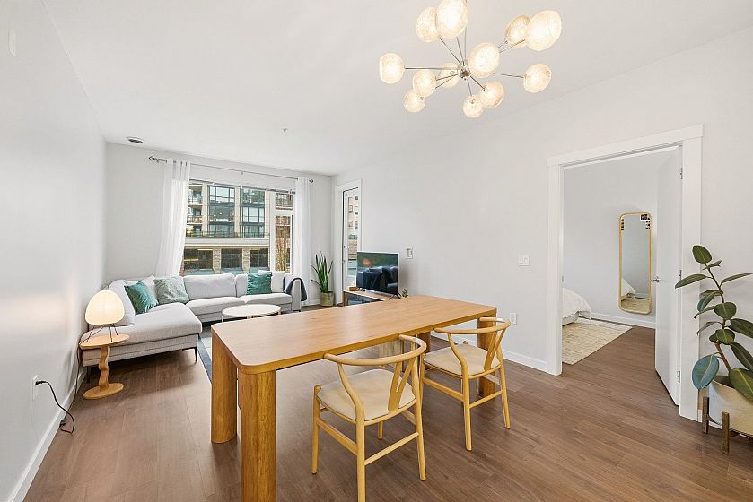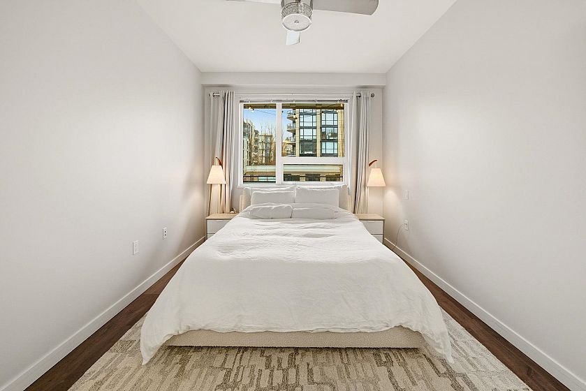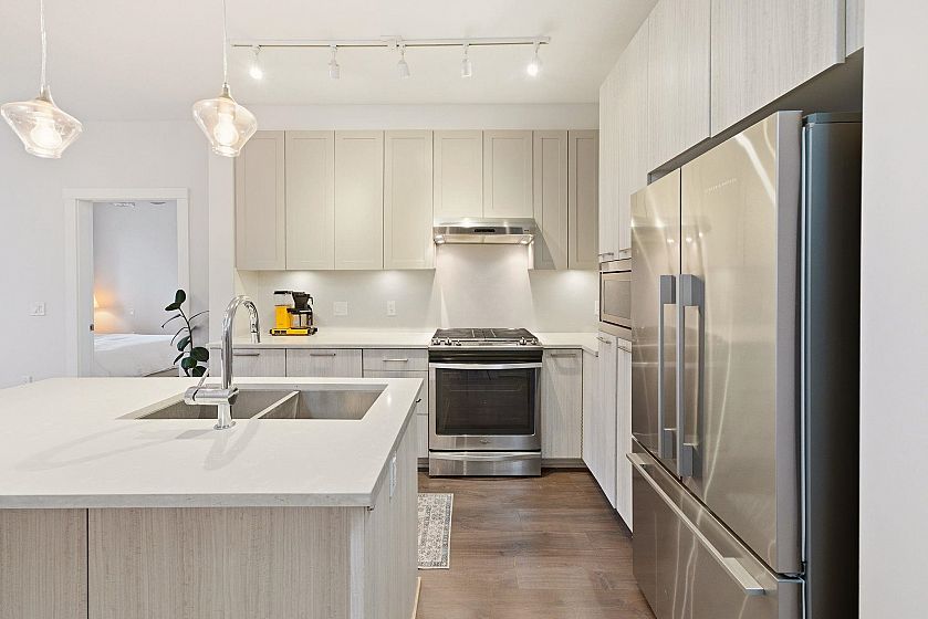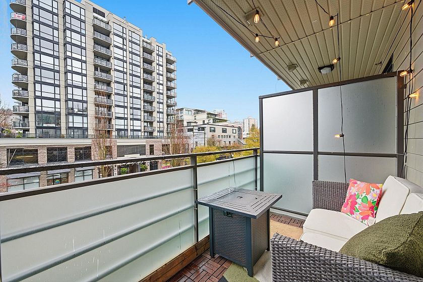 Experience Elevated Living at First Street West. Discover this pristine 2-bedroom, 2-bathroom sanctuary by Fairborne Homes, nestled in the vibrant pulse of Lower Lonsdale. Designed for the modern entertainer, the chef-inspired kitchen boasts a massive center island, integrated appliances, and a premium 5-burner gas range. The seamless open-concept layout flows onto a private outdoor space—perfect for alfresco evenings. Retreat to a primary suite featuring a walk-in closet and a spa-inspired ensuite. With sleek laminate flooring throughout, a rooftop lounge with panoramic views, and an oversized storage locker conveniently located by your secure parking, this home offers an effortless North Shore lifestyle just steps from Lonsdale Quay.