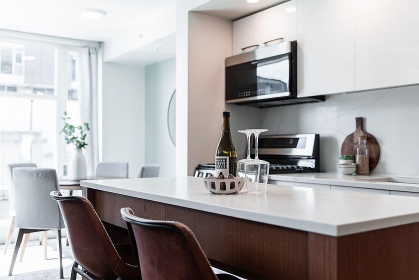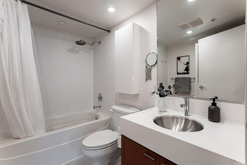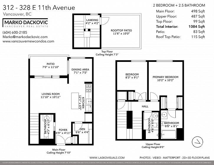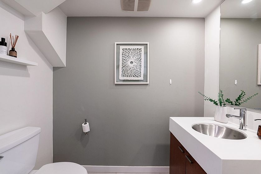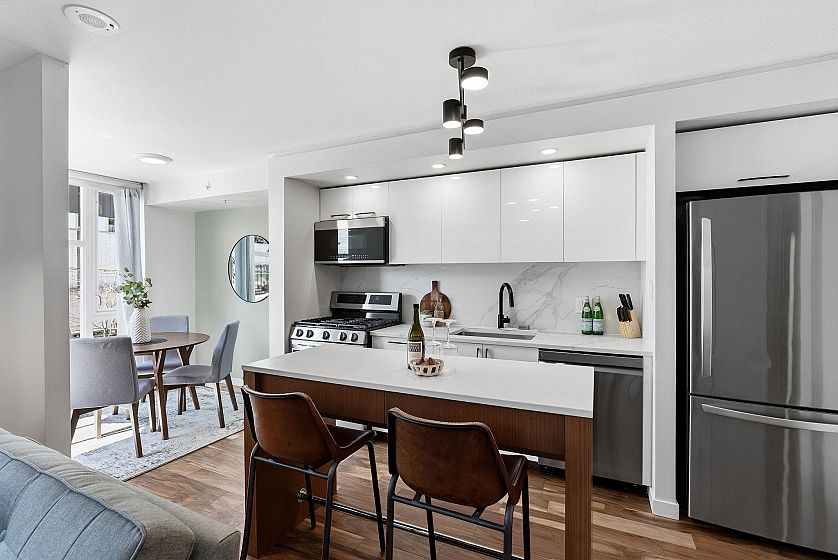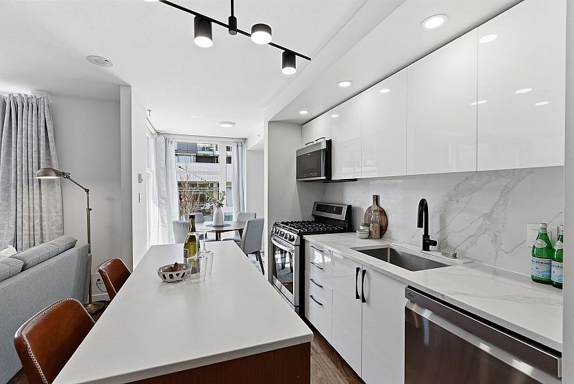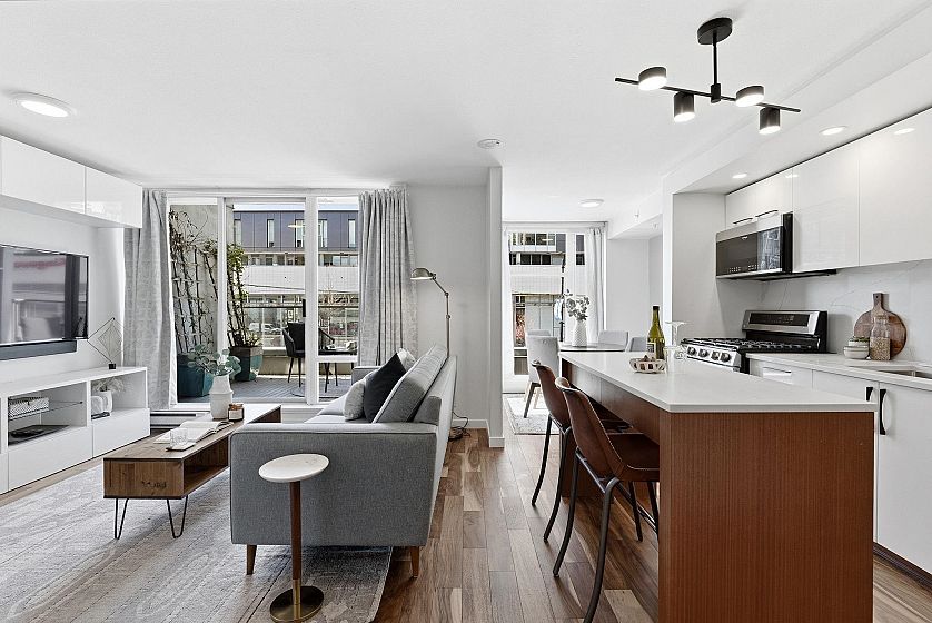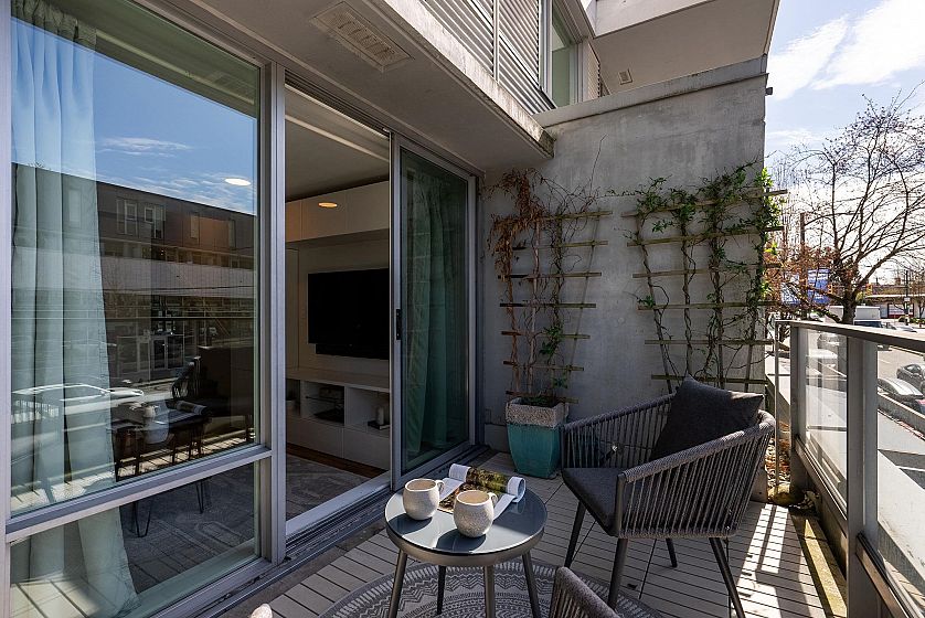 Rarely offered 3-STOREY SKYHOME at UNO in the heart of Mount Pleasant. This stunning 2bed+den, 2.5 bath concrete home delivers 1,084sf of SUBSTANTIALLY RENOVATED living space w/ open main level featuring living/dining, office & sleek kitchen w/ gas stove & island. FULLY UPGRADED in 2023 - new hardwood floors throughout, high-end appliances, custom CALIFORNIA CLOSETS throughout, new counters/backsplash & chef's pantry. Custom cabinetry, ceiling fans, LED lighting & newer W/D. Upper level w/ king-size primary & queen 2nd bdrm. Crown jewel - private ROOFTOP SUNDECK w/ gas hookup for firepit or BBQ. Combined 1,282sf of indoor-outdoor living. 1 parking & 1 storage. Steps to Main Street's best shops, restaurants & future Broadway Subway. A truly unique offering. Open Houses April 18 & 19th 2-4PM