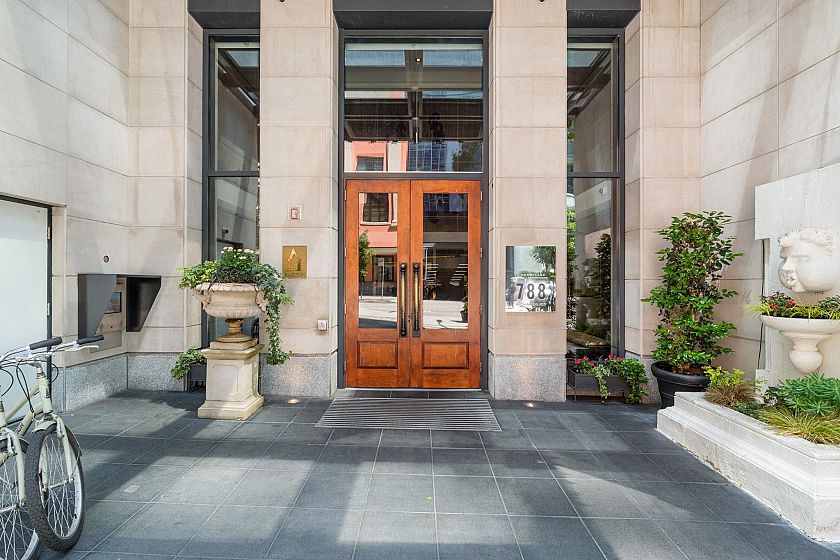Urban elegance at L’Hermitage. This 2 BED 2 BATH + FLEX balances the vibrant energy of the city with the quiet comfort of a well-designed home. This bright CORNER residence offers an efficient 910 SF plan with a proper livingroom & dining area designed for seamless entertaining. The kitchen boasts Eggersmann cabinetry, Sub-Zero refrigerator & Bosch gas cooking. The primary bedroom offers a spa-like ensuite with soaker tub & standalone walk-in shower. With non-adjacent bedrms for privacy, a versatile FLEX & a lovely covered balcony, this home provides a refined retreat in the heart of the city. HOTEL amenities with concierge, gym, steam rm, lounge, rooftop garden & outdoor pool. 100 walkscore with Robson, Pacific Centre, shopping, entertainment, right outside your door. 1 parking & AC.