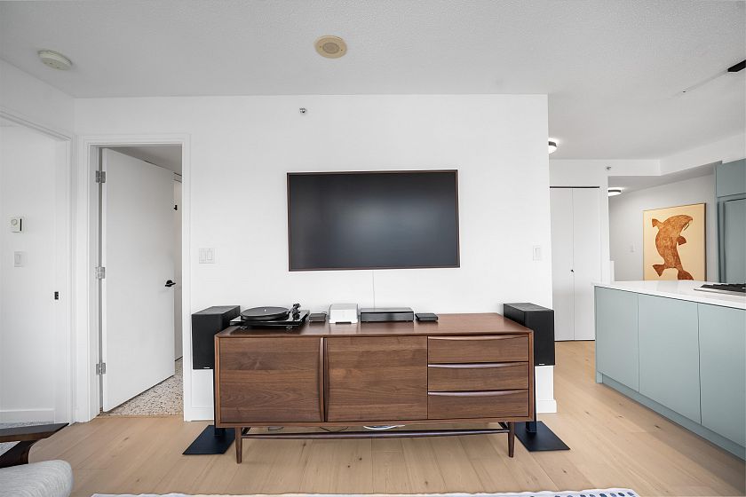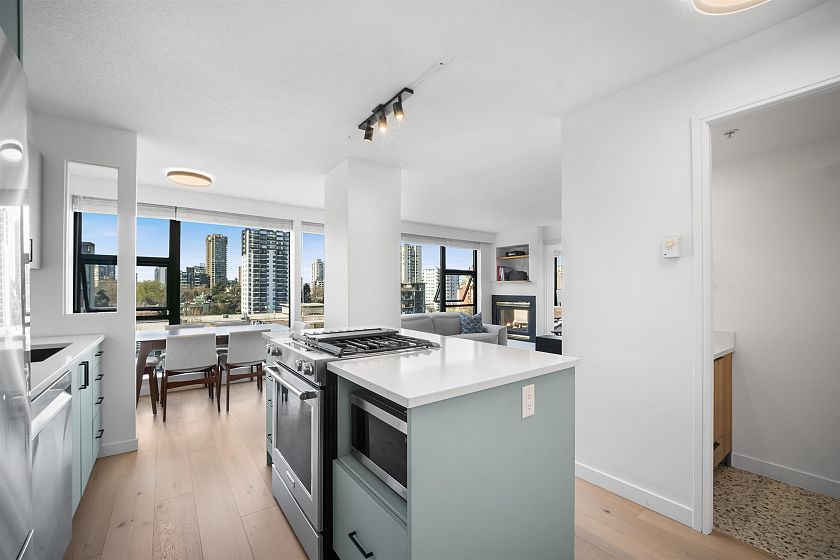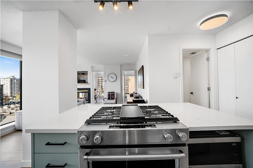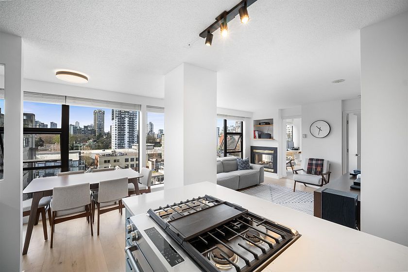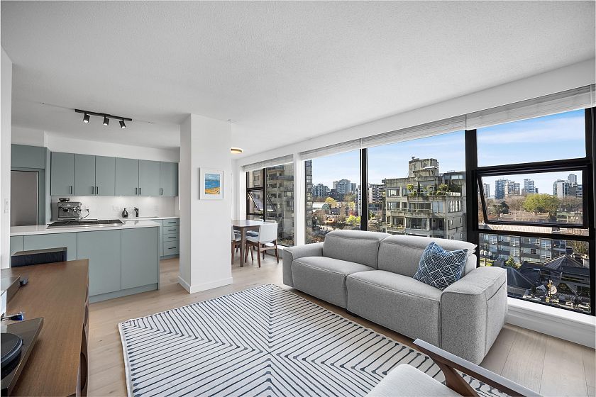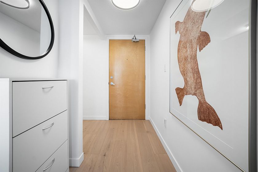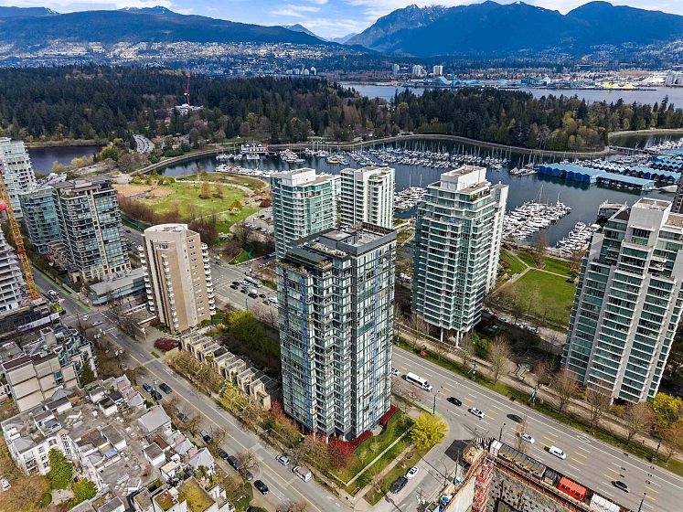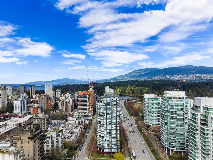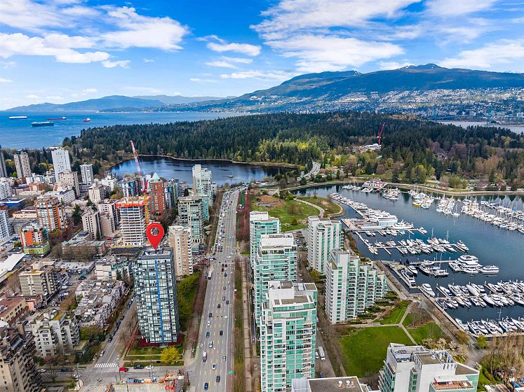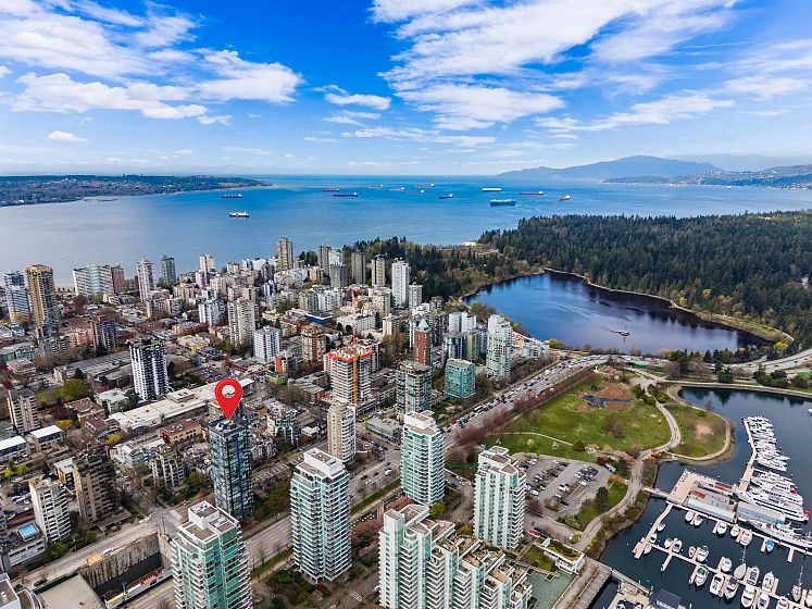 Gateway to the best of the West End. Positioned at the quiet edge of Alberni, this corner home sits at the hinge of city energy and Stanley Park calm, with floor-to-ceiling windows drawing in natural light and outlooks toward the North Shore mountains, Lost Lagoon, and Stanley Park. Classy, quality updates elevate a smart, efficient layout; engineered hardwood floors, quartz counters, a refreshed kitchen with island and quality new appliances, and fully renovated bathrooms. Living & dining spaces are well-planned for everyday life, while custom storage throughout keeps everything in its place. A rare private garage with attached storage adds real everyday function. A well-maintained, proactively managed concrete building in a truly connected location, steps to the seawall, Denman & Robson.