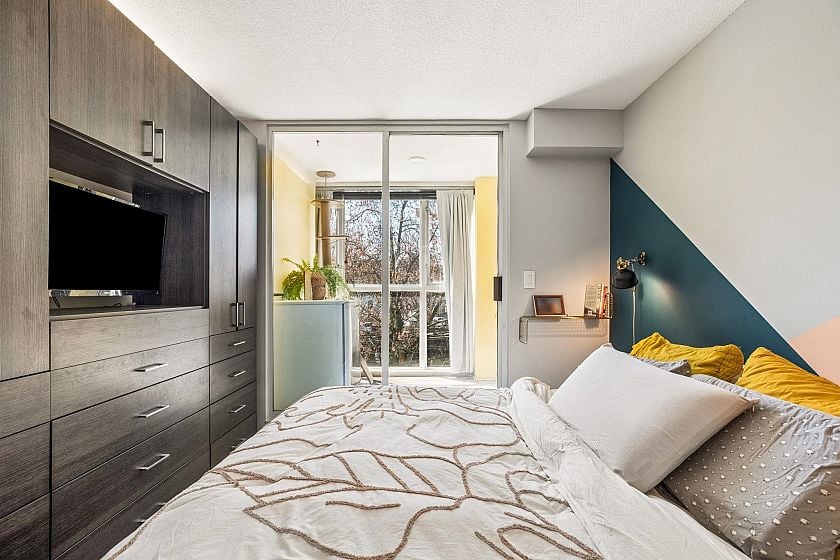 Welcome to the epitome of Mount Pleasant living. This beautifully designed 2-bed, 1-bath home offers a bright, open-concept layout with seamless flow. The dual-access bathroom connects to both the primary and main living. The primary features a sunlit solarium and custom millwork closet/TV wall, while all closets include California Closet organizers. The second bedroom offers a custom made murphy bed - perfect for guests or a flexible office. Complete with parking and storage, steps to Main Street, parks, cafés, and boutiques. *Open House Saturday April 18TH 2–4PM*