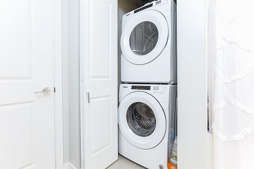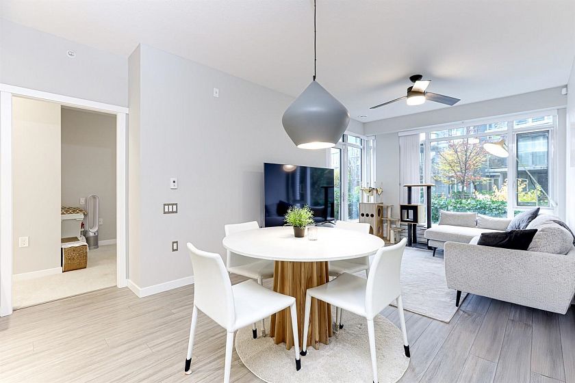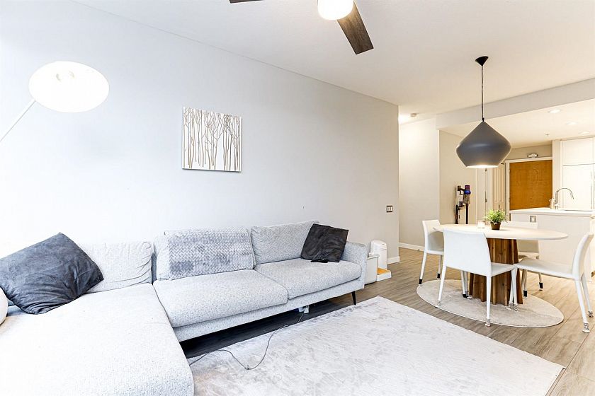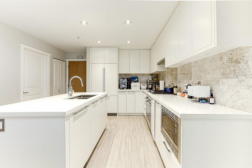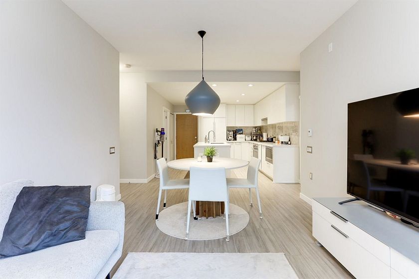 Experience riverfront living at its best! This spacious 2 bed, 2 bath home features a bright, open-concept layout with soaring ceilings and oversized windows that fill the space with natural light. The chef-inspired kitchen includes a gas range, built-in appliances, and a large island, perfect for cooking and entertaining. Thoughtfully designed layout offers bedrooms on opposite sides for privacy, plus a versatile flex space ideal for an office, pantry, or storage. The primary suite boasts a walk-in closet and large spa-inspired ensuite with double vanities, and glass shower. Fully fenced patio, great for BBQs, overlooking the courtyard and riverside. With trails, cafés, restaurants, and groceries just a stroll away, this is the ultimate River District lifestyle.
