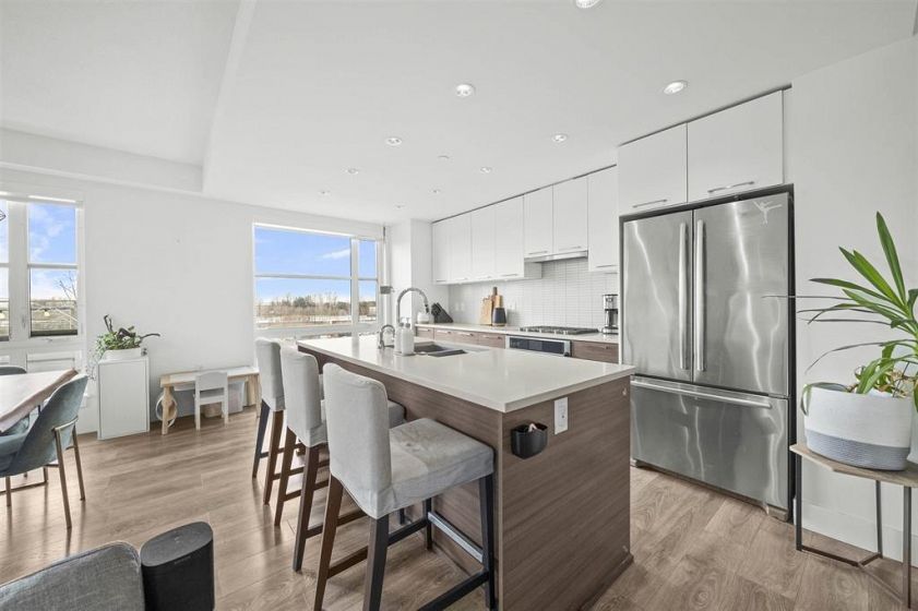 Welcome to this bright corner unit at 3 Town Centre in the heart of River District! This beautifully designed 2 bed + flex home offers 1,051 sqft of open-concept living, with oversized windows filling the living, dining, and kitchen areas with natural light—perfect for entertaining. The smart layout provides excellent bedroom separation and a versatile flex space ideal for a home office or storage. The spacious primary bedroom fits a king-size bed. Enjoy an expansive SE-facing patio spanning the length of the home. Access 14,000+ sqft of CLUB CENTRAL amenities: gym, pool, hot tub, sauna, and squash courts. Includes 1 parking, storage locker, and strata fees covering heating, gas, and hot water. April 26, 1:30-3:30PM