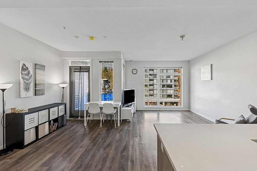 BEST VALUE in the River District. Welcome to R&R by Polygon built in 2018 in the River District. This modern OPEN concept unit is over 900 sqft with 2 bed & 2-bath & features floor to ceiling windows. The home has an open layout, in-floor radiant heating, & laminate flooring throughout. The gourmet kitchen features stainless steel appliances, gas range & quartz countertops with an island which is great for entertaining. The primary bedroom has a walk-in closet & a spa-like ensuite with double vanities. The pet-friendly building offers a fully equipped fitness center, 1 parking, 1 storage. CLOFFICE opportunity @ 30" wide x 40" deep. NEW PRICE.
