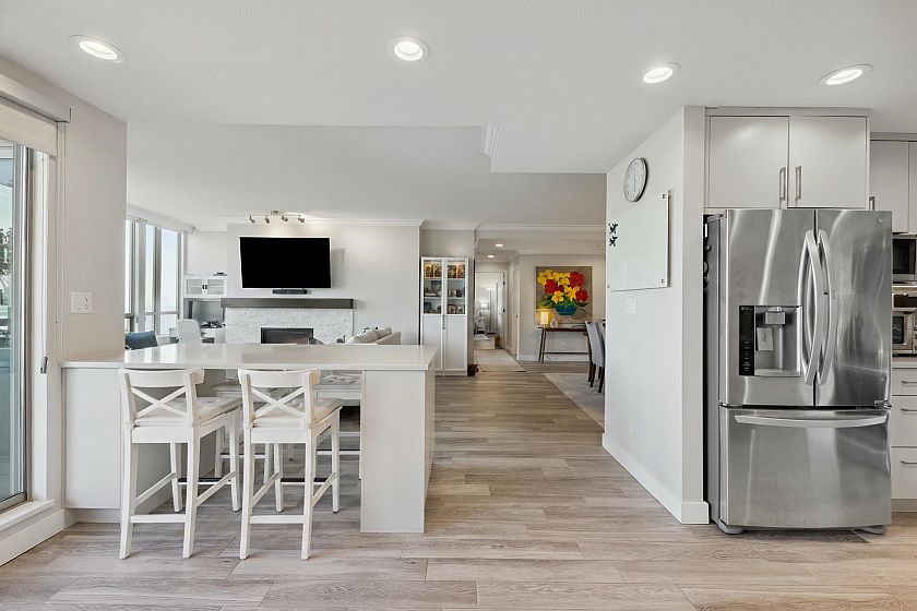 Fully renovated 2-bed, 2-bath at Deer Ridge Estates with 1,450 sq. ft. of solid concrete construction. Enjoy unobstructed West Coast ocean, city & bridge VIEWS from every room. Features include a modern open kitchen, spacious living/dining with fireplace, large primary w/ walk-in & ensuite, full laundry room, 2 covered balconies, 2 parking stalls, and a storage locker. Located in a well run and quiet community with tennis courts, playground & trails, minutes to Mulgrave, Dundarave, Park Royal & Cypress. Call for your private showing!