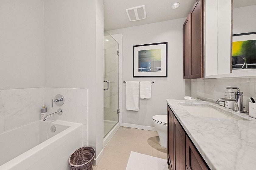 A standout offering in one of the North Shore’s most sought-after buildings-absolutely exquisite Capstone homes here are rarely available. This beautifully updated suite, built by Fairborne Homes, features real wood cabinetry, natural stone countertops, large-format honed porcelain tile floors, cultured marble and limestone wall tiles. A 300 sq ft wraparound balcony on a prime southwest corner extends the living space and captures park, city and water views. Recent updates include all kitchen cabinetry, appliances, hood fan, island and counters, plus upgraded bathrooms, closet organizers and new interior doors. Lovingly maintained and ideally located. A delight to show.