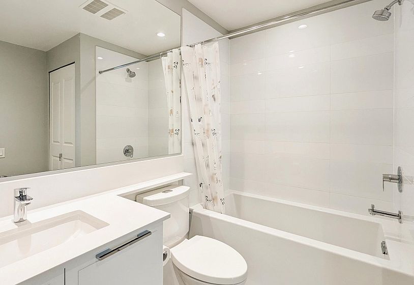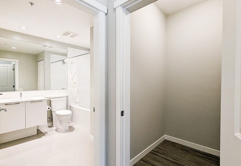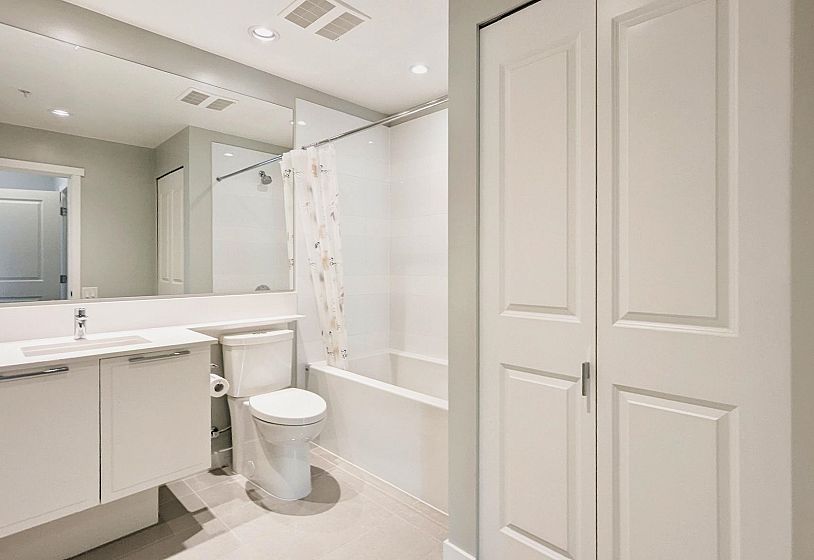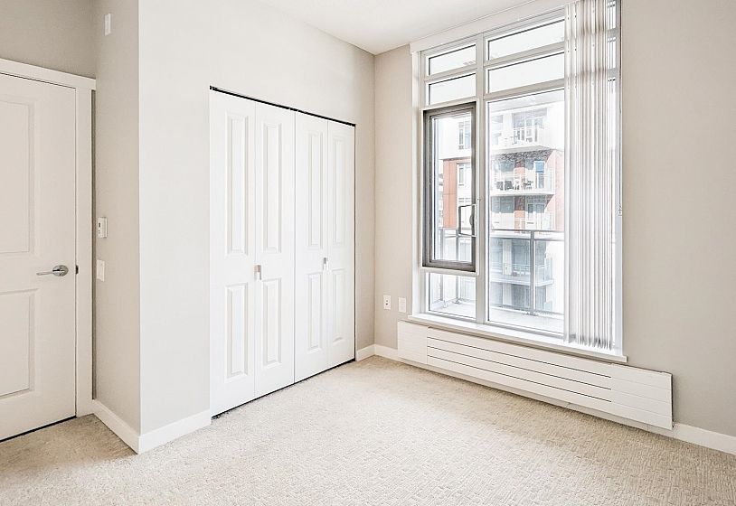 River view and South facing! Welcome to Currents at Waterside by Polygon Homes. This bright and accessible unit features an open concept with 2 BEDROOMS/2 FULL BATHS & over-height 9' ceilings with large windows allowing lots of natural light. Equipped with a gourmet kitchen that includes an island, high-end stainless steel appliances, and a storage room which can be utilized as a pantry or office. This concrete unit provides both privacy facing the courtyard and water views. Enjoy your walk by the river! Fantastic amenities include an exercise room and a party room. Few minutes walk away from restaurants, shops & more at River District. One parking included. Open house: April 26 Sunday 2:30pm to 4pm