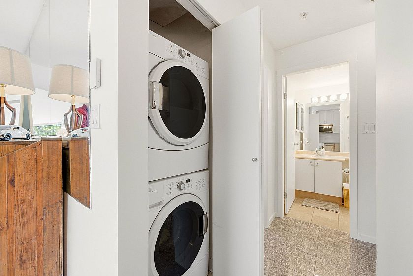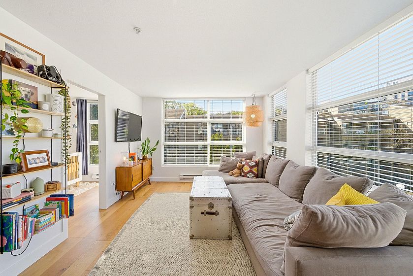 Rarely do you find a 2 bedroom corner unit under $600k in Mount Pleasant! One of the most desirable neighbourhoods in the city & short walk to parks, world class restaurants, cafes, breweries, bars, transit, schools, gyms, studios. Open concept corner unit floorplan with 630sf on quiet side of the building features a ton of windows for beautiful natural light, renovated with stone counters, stainless steel appliances, shaker cabinets, engineered hardwood floors. 2 good sized bedrooms on opposite side of the unit. Bright treed outlook facing South West for a ton of natural light. Insuite laundry. 1 parking & 1 storage locker. OPEN HOUSE: Saturday 25th 12-2pm!