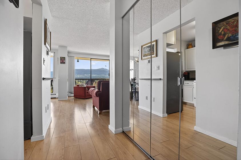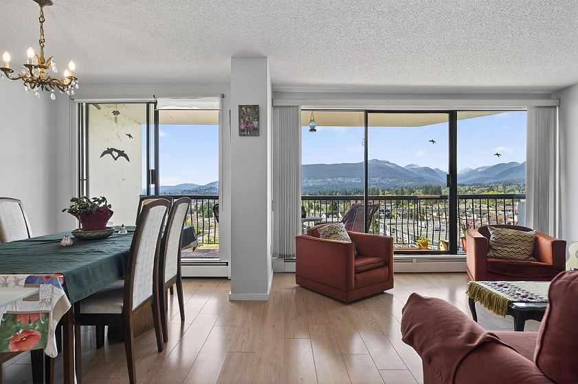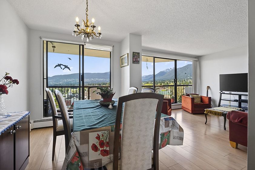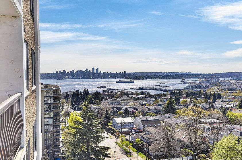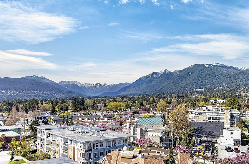 Views galore! get ready for an opportunity to enjoy breathless vistas all year round. This NW corner home sits right along Victoria Park in Central Lonsdale, with sweeping views of the city, water, and North Shore mountains. The 922 sq ft layout is comfortable and efficient, with two bedrooms off the same wing, ideal for a home office or small family. The living and dining areas open to a long balcony that takes full advantage of the west-facing outlook, plus a second balcony for a wonderful cross breeze and views of the mountains. Well cared for and move-in ready, with room to add your personal touches and updates. Includes 2 parking and 1 storage. Steps to Lonsdale’s shops, restaurants, and everyday essentials, all while living right on the park.
