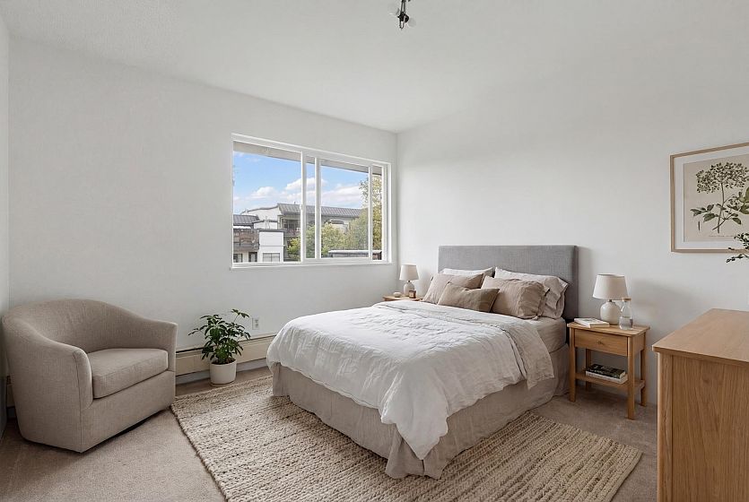 Welcome to Valko Gardens, in the heart of Mount Pleasant! Top floor with stunning views of the North Shore Mountains, this spacious 2 bedroom home has been freshly painted and boasts a functional layout and great natural light throughout. Located on a quiet street, but just a 5-minute walk to the future Emily Carr SkyTrain station, and set in one of Vancouver’s most vibrant neighbourhoods less than two blocks to Dude Chilling Park, easy walk to Main Street District’s cafes, restaurants, breweries, and huge long term upside potential. Community Garden to the West. Very well maintained building with many updates including vinyl windows, pipes, parkade membrane, and more, and please note this is a walk up, there is no expensive elevator to maintain! No Dogs. Must See!