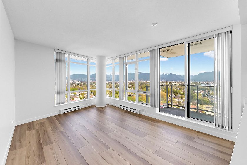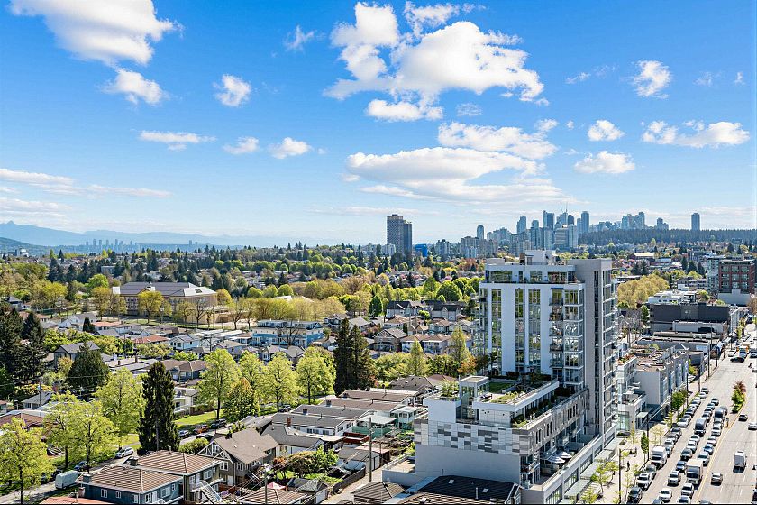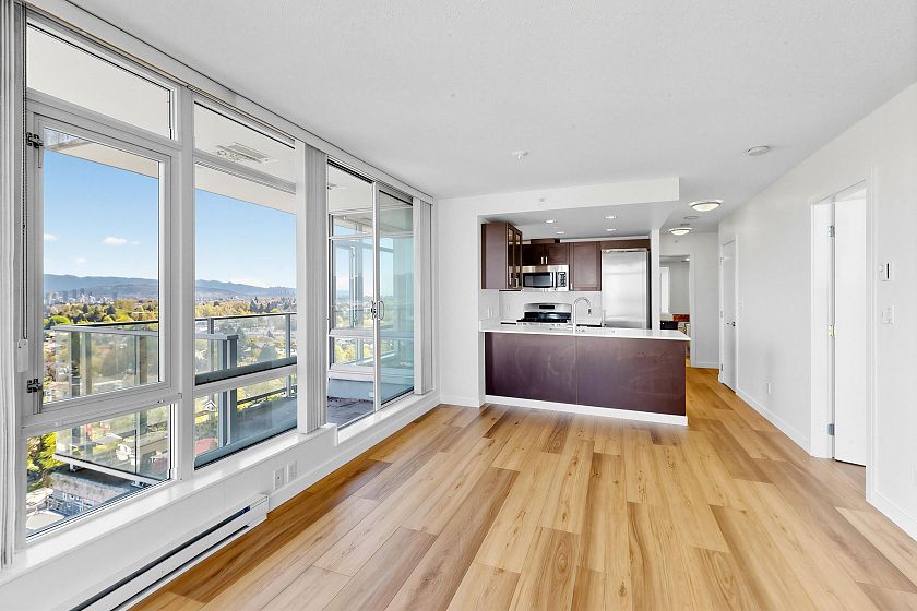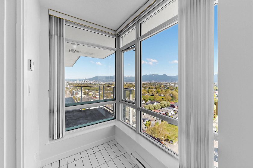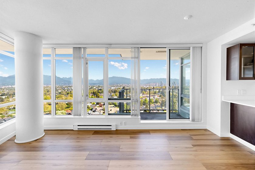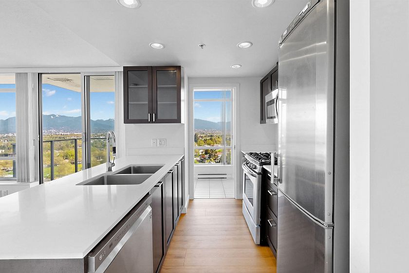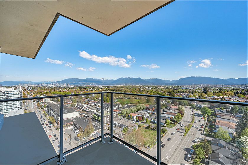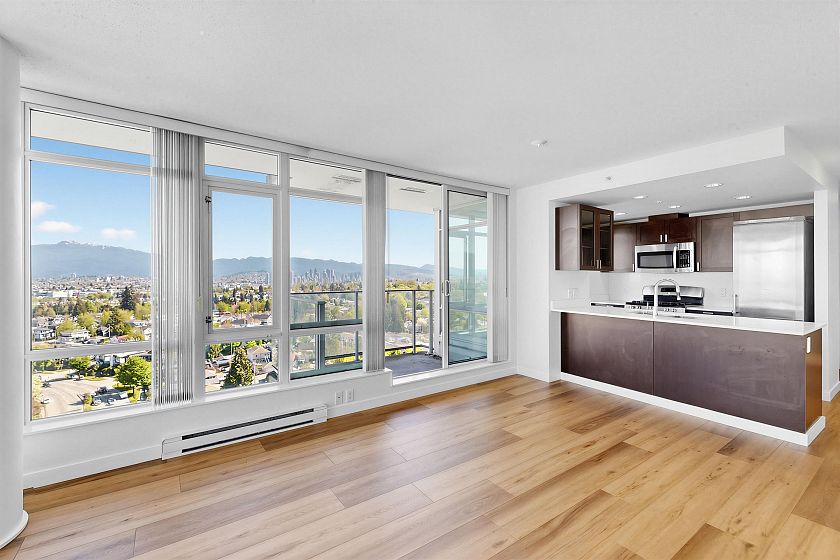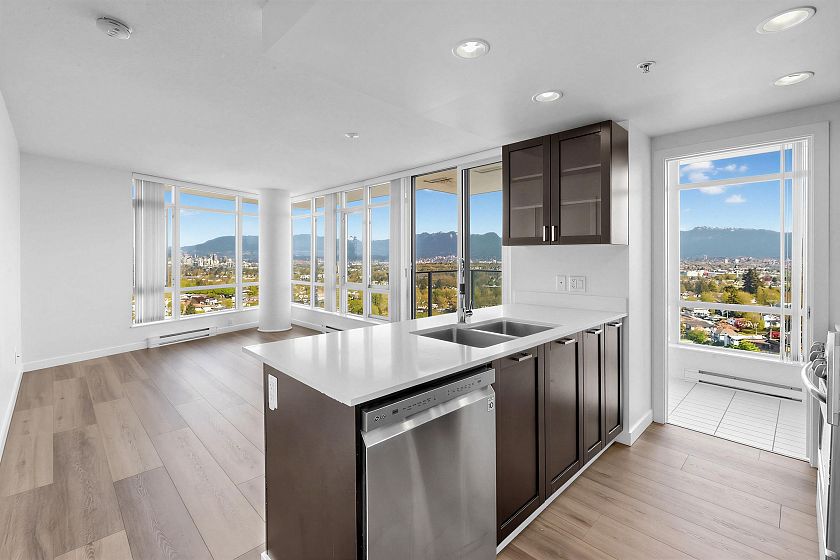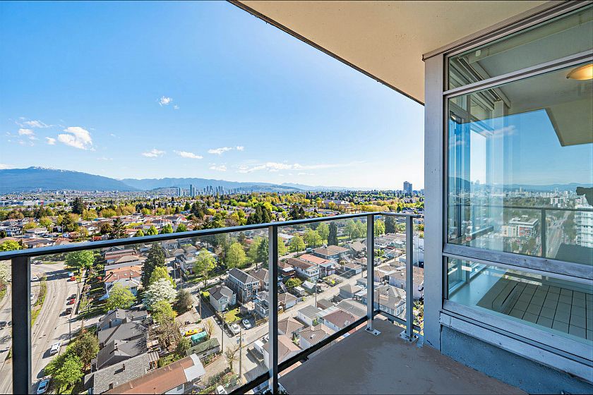 PANORAMIC VIEWS ! BREATHTAKING VIEWS OF MOUNTAINS, CITY & WATER ! Rare available EXCEPTIONAL VALUE, well kept 2 bedrooms, 2 baths & den, high ceiling, open plan concept layout excellent for guest entertainment. Features designer kitchen cabinetry, stainless steel appliances, gas stove, Newer hardwood throughout. Enjoy their excellent amenities, including a 2 level fitness center, entertainment lounge, party room and a garden terrace. 1 parking +1 locker. Central location ! Close to School (Gladstone Secondary & G T Cunningham Elementary), steps from T&T Supermarket, great restaurants, shopping, park, bus and the Nanaimo SkyTrain station. Must see !