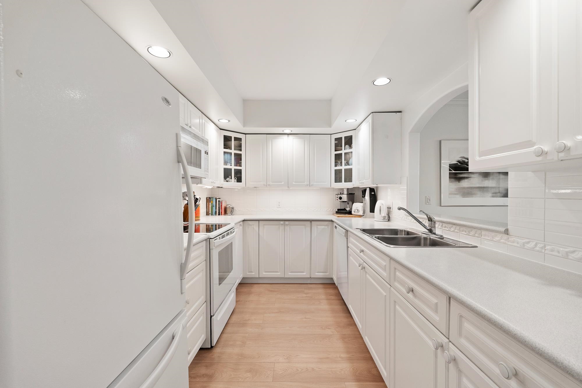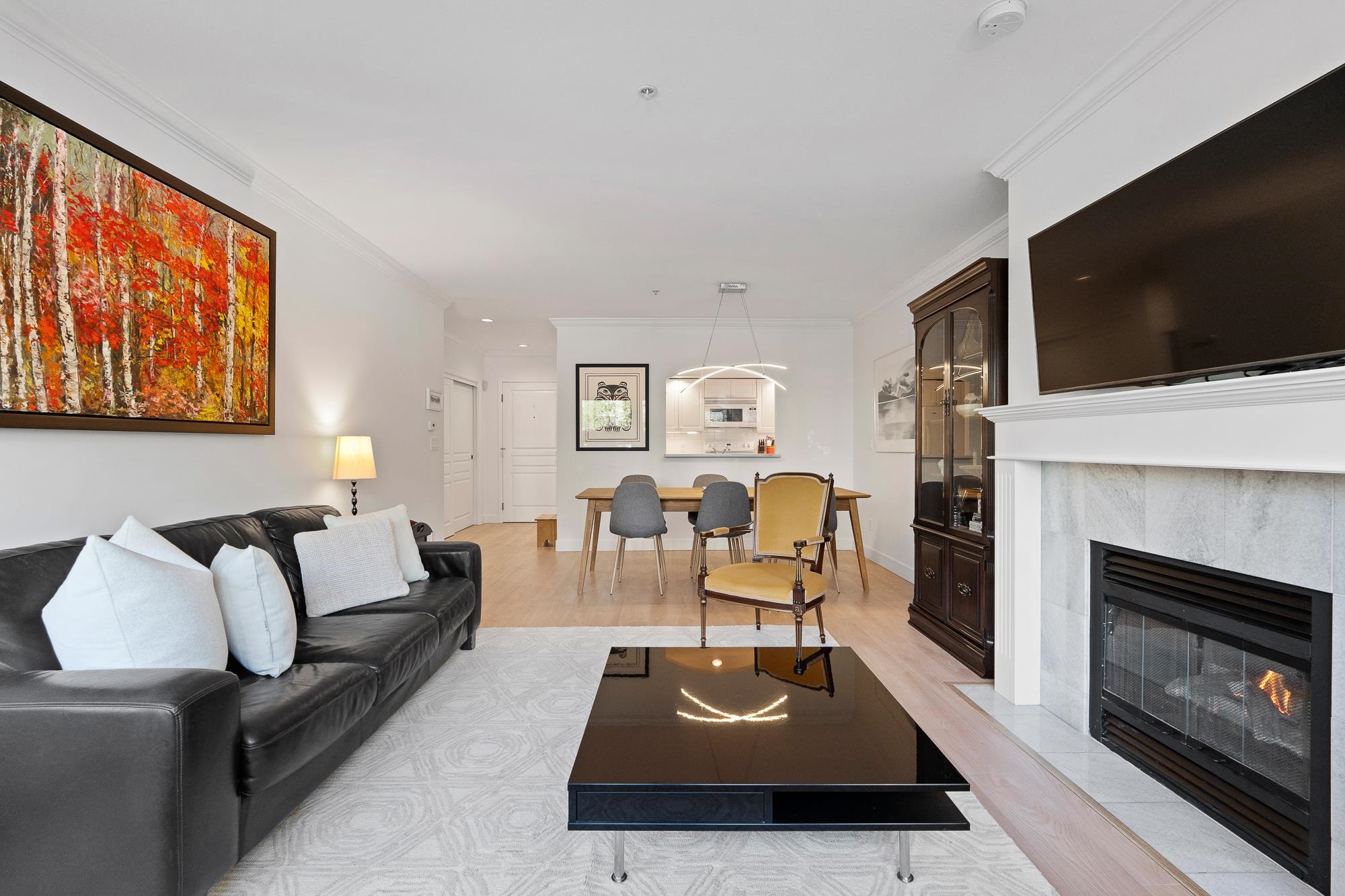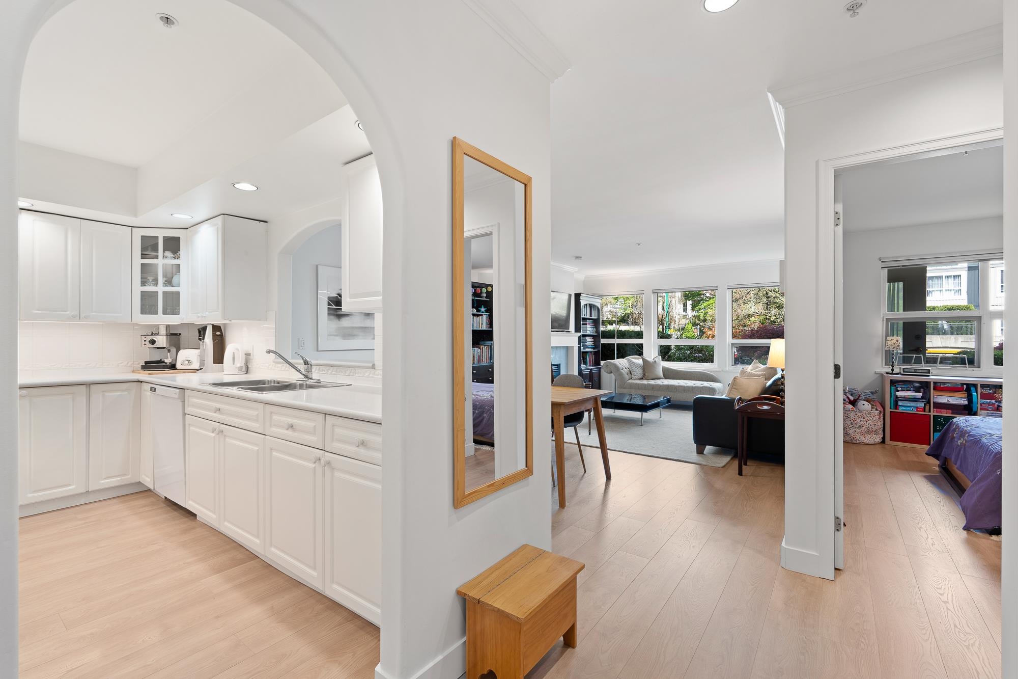 Welcome to the EVERGREENS – an incredible PROACTIVE Boutique 11-unit community. Over 1100sqft for this stunning 2 Bedroom & 2 Bath Townhouse-style one level home with direct street entry —set among beautifully landscaped gardens and a private walkout patio perfect for morning coffee or evening unwinding. Enjoy hosting friends and family with a generous living and dining areas w/a cozy gas fireplace. The kitchen features endless cabinetry and incredible counterspace. Sprawling Primary Bedroom - wall-to-wall closet & spa bathroom, w/jacuzzi bathtub & separate shower. Spacious 2bd bedroom, with space for desk/workspace as well. UPGRADES: wide-plank oak laminate flooring & NEW washer/dryer. Impeccable bldg - ROOF (2025) & well funded CRF. Parking & locker included. OPEN Sat May 2nd 2-4pm