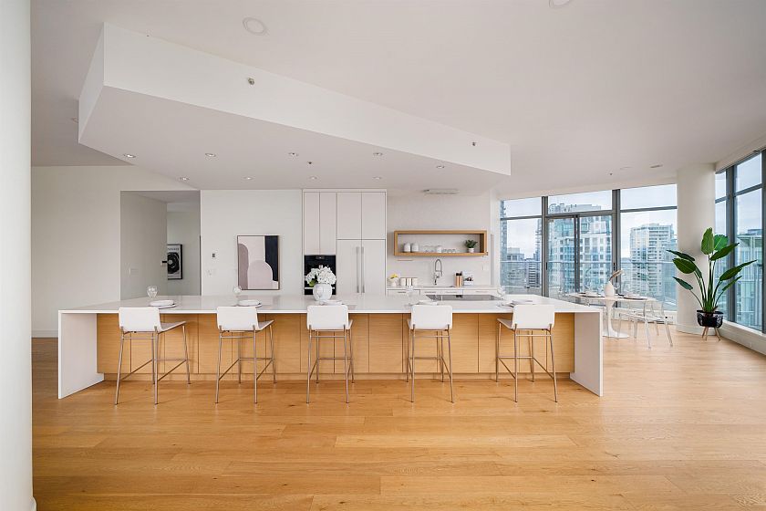 Welcome to your dream two level ocean view penthouse at the heart of Coal Harbour! Over 5,000 square feet over indoor and outdoor living completely re-modeled by award winning Goldwood Homes! Private elevator leads you right into the epitome of luxury throughout this 3 bedroom, 4 bath suite offering new white oak floors, spectacular 20 foot kitchen island, Miele appliances, 10’9 ceilings, motorized blinds, Grohe bath fixtures, LED lights, Green Wise paint and so much more. The 2,038' roof top patio offers wrap around views of Coal Harbour and Downtown Vancouver, private outdoor pool and massive entertainment space. This is a one of kind offering not to be missed, very motivated seller, try your offer!