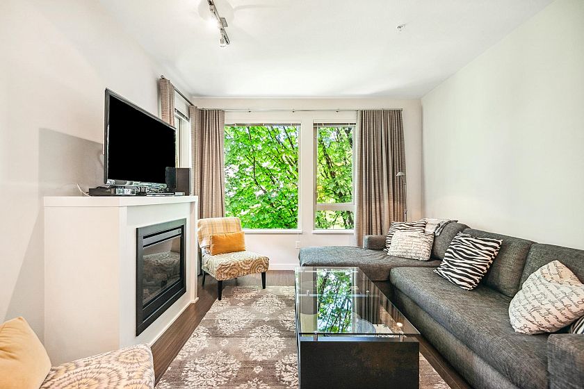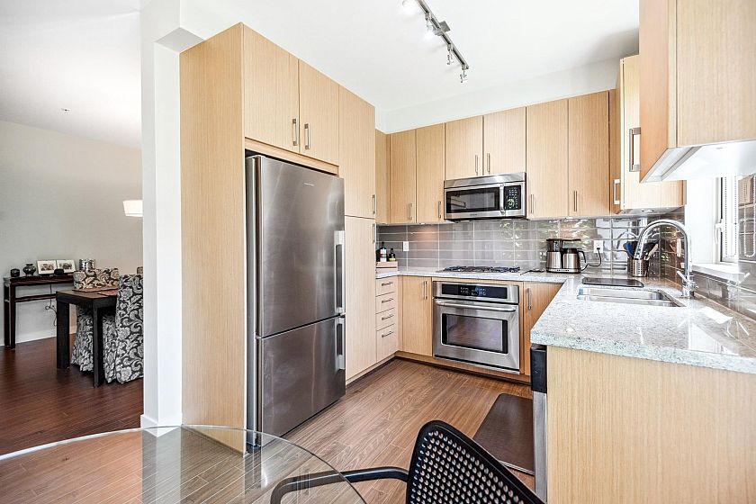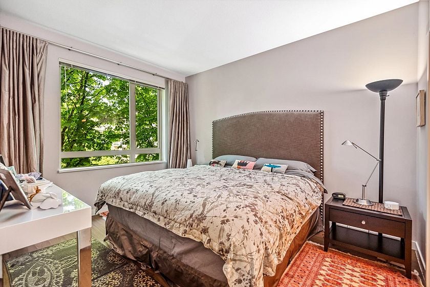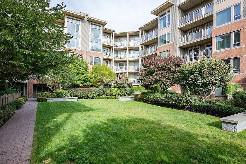 Rarely available 3-bed, 2-bath corner home in sought-after Anderson Walk by Polygon. Offering over 1,200 sq/ft on one level w/ 9’ ceilings, this spacious suite is ideal for families or downsizers. The open-concept living/dining area connects to a well-appointed kitchen w/ granite counters, S/S appliances, gas cooktop, & breakfast nook. A covered balcony offers a peaceful, tree-lined outlook. The thoughtful layout separates the bdrms for privacy. The primary suite has a WIC & 5-pce ensuite. The secondary bdrms are also well-sized—1 features a WIC, while the other, currently used as a home office, includes custom built-in shelving. Includes an insuite laundry room, 2 parking, locker, radiant heat, & custom closest organizers. Walk to shops, parks, and transit in Central Lonsdale.