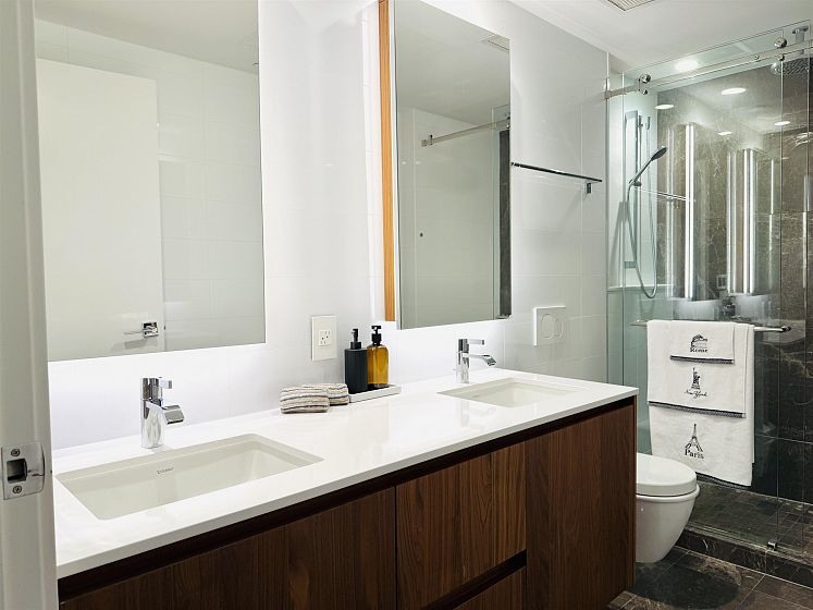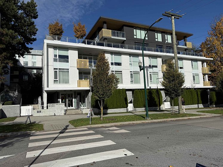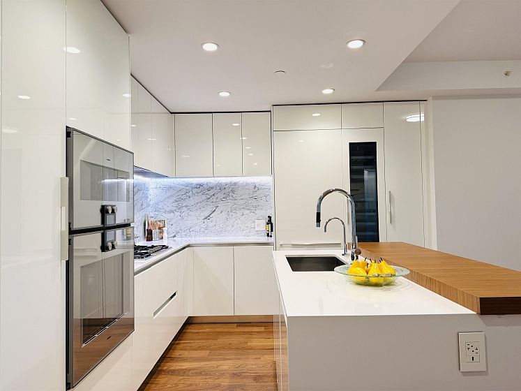 Welcome to Belpark, a luxury concrete building in South Cambie. This spacious 1,273 sq.ft. home features 3 bedrooms 2 bathroom 2 parking spots (1EV) , 2 locker. Enjoy high-end finishes including Gaggenau appliances, stone countertops, air conditioning, and hardwood floors. The chef's kitchen is a highlight, with integrated Gaggenau appliances, a gas range, a full-size wine fridge, and an expansive quartz island perfect for entertaining. The open concept layout maximized space and natural light. The private patio offers serene views of greenery. The primary bedroom includes a walk-in closet and ensuite with heated floors. Concierge, gym, games room, and more. Steps from parks, Sexsmith Elementary & Churchhill Secondary, and minutes from downtown and YVR.