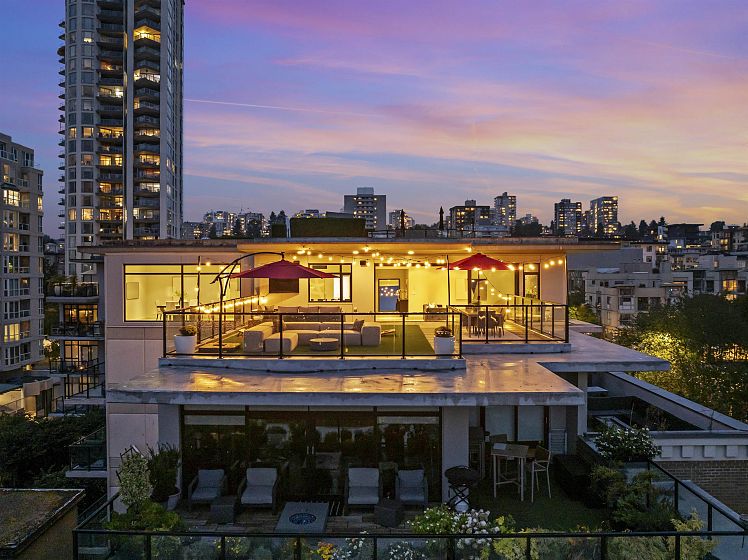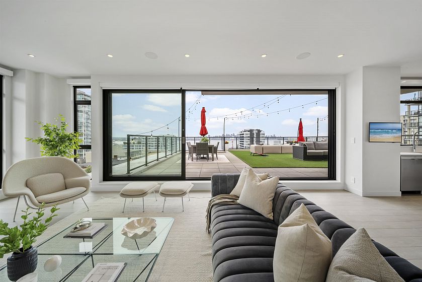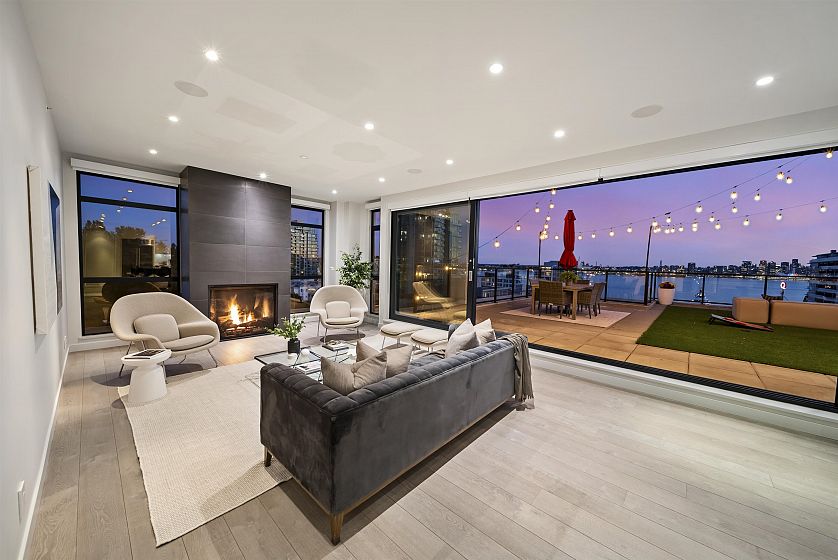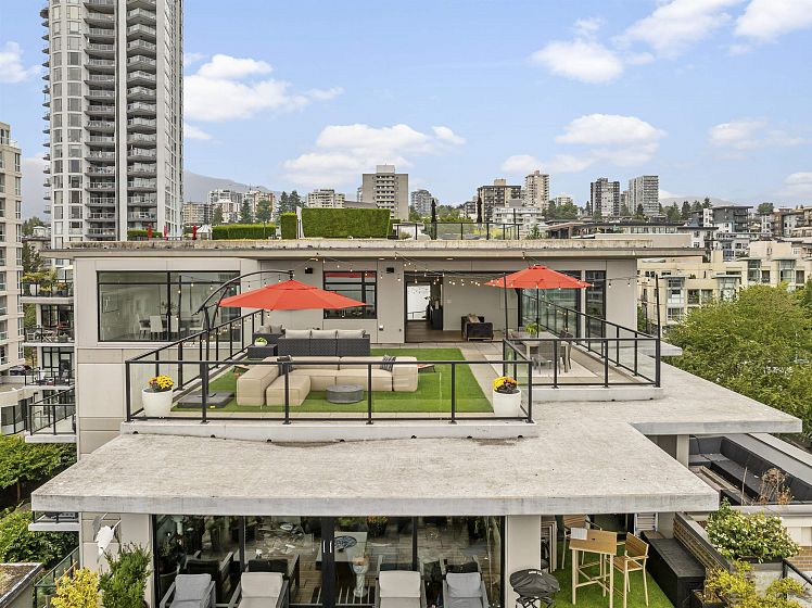 Breathtaking 2,200 sq ft penthouse with an additional 1,000 sq ft private patio—one level of pure luxury! Enjoy sweeping, unobstructed views of the ocean and downtown Vancouver, perfect for dining under the stars, sun lounging, or hosting unforgettable gatherings. This one-of-a-kind home in the iconic Wallace & McDowell was created by merging two residences into one. Features include an expansive open kitchen and living area with sliding glass wall to your outdoor paradise, 3 bedrooms, custom walk-in closet, designer office built-ins, a stunning dining room with floor-to-ceiling windows, plus secure double parking and one of the largest private storage lockers you’ll find. With top-tier appliances and timeless finishes, this is a rare offering.
