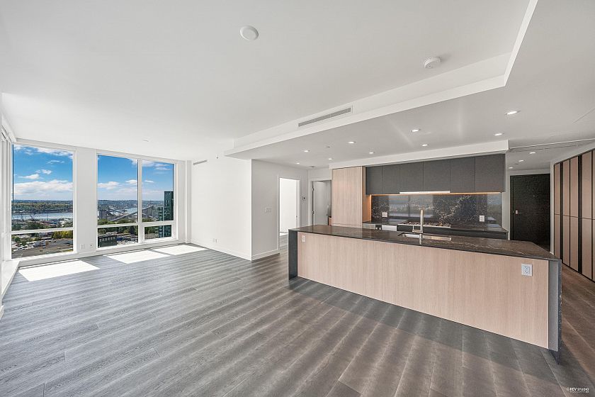 Stunning 26th floor 3 bedroom, 3 bathroom at highly sought after Apex by Denna Homes. Bright 1373 SF SouthEast facing corner unit with 168 SF balcony with unobstructed mountain, water and city views. This unit has an amazing Denna Collection upgrades including all finishes, Gaggenau appliances & custom closets. This boutique style building offers air-conditioning, gym, social lounge, wellness center, bike-repair room, swimming pool, sauna & steam room.