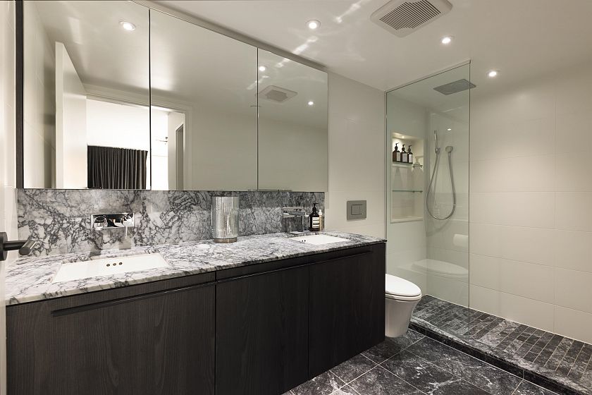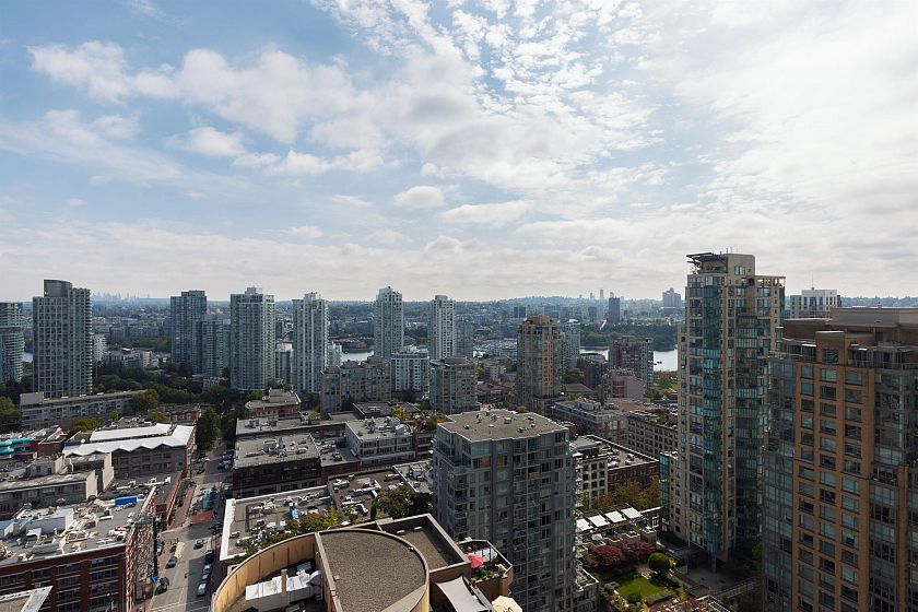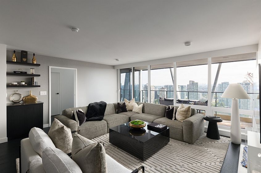 Elevated & updated corner home at 8X on the Park with panoramic views of False Creek, city, and mountains. This refined 3 bed, 2 bath residence features a 10ft natural stone island, integrated Miele appliances, custom millwork, powered blinds, and floor-to-ceiling windows. The open plan flows to an oversized covered patio with herringbone wood decking. Elegant bedrooms, a reimagined walk-in closet, engineered hardwood, natural tile, & A/C throughout complete the home. Includes 2 side-by-side parking, storage, and bike locker. Enjoy world-class amenities: concierge, fitness centre, and rooftop oasis. A rare, turnkey offering in one of Vancouver's premier buildings.