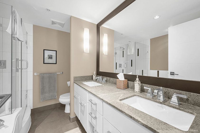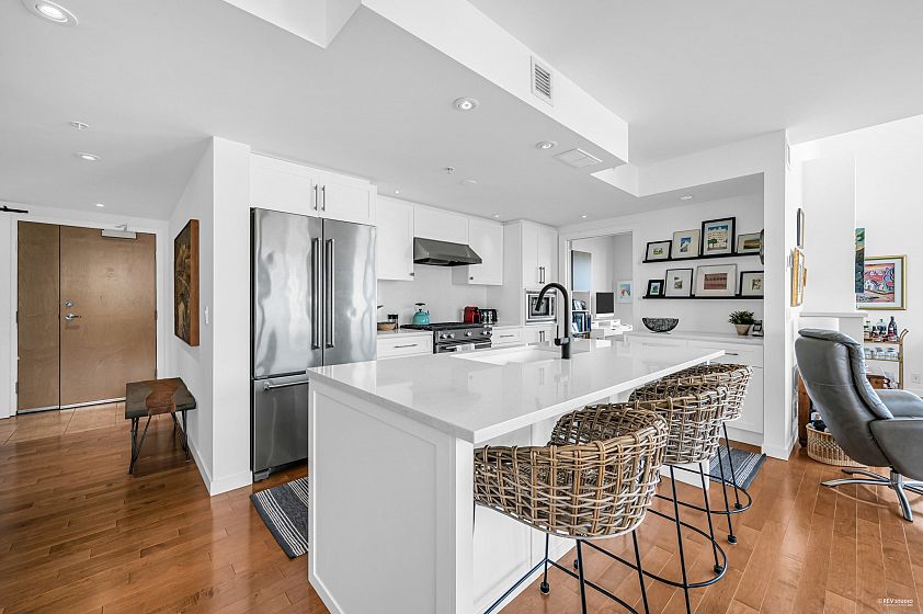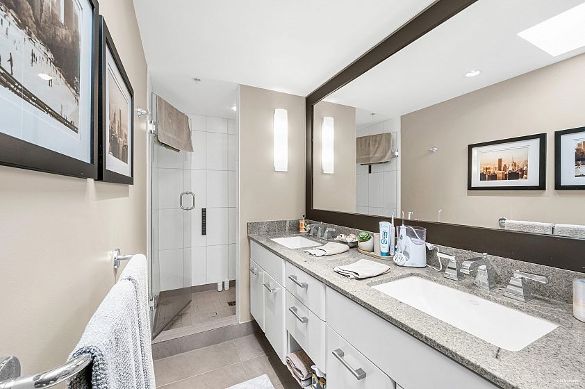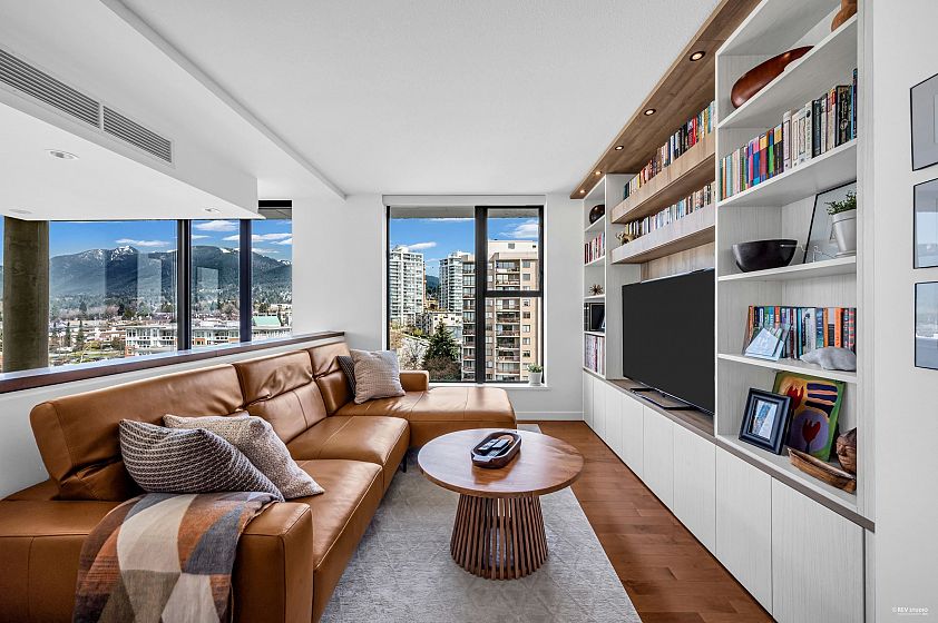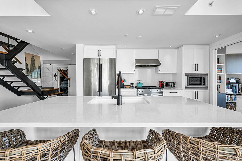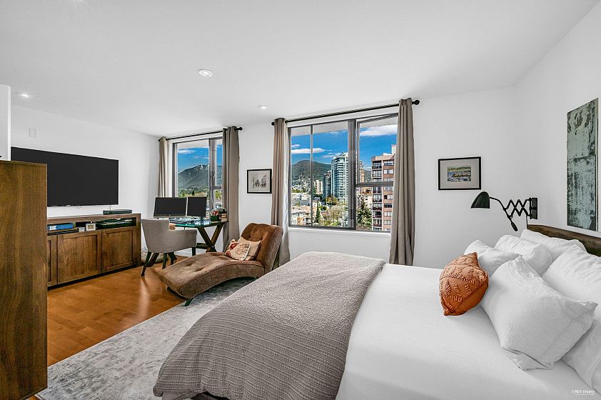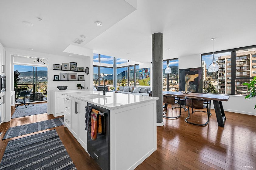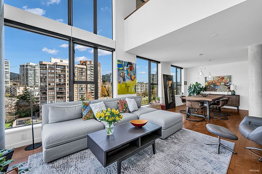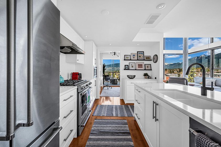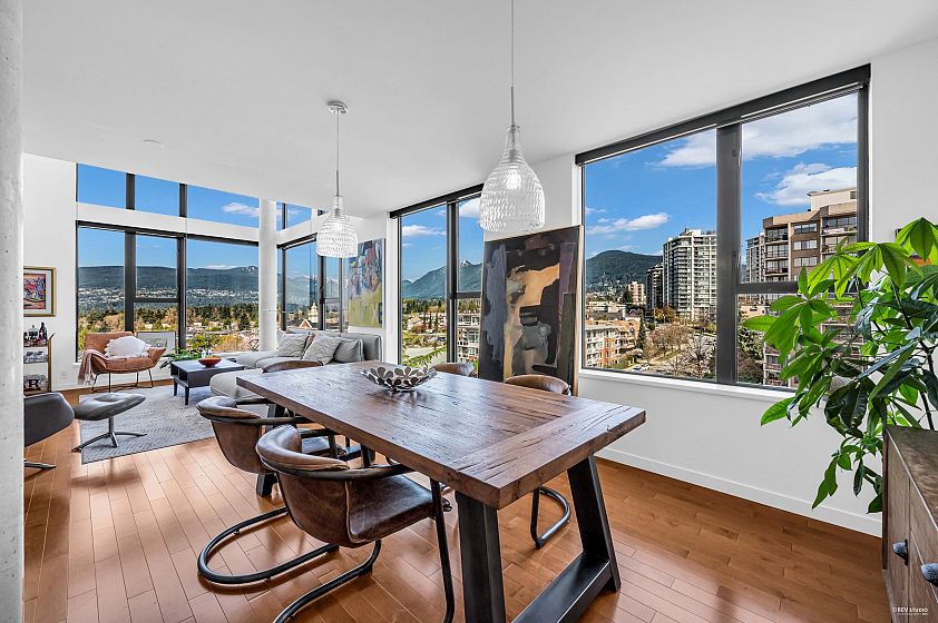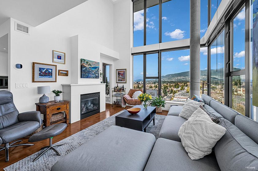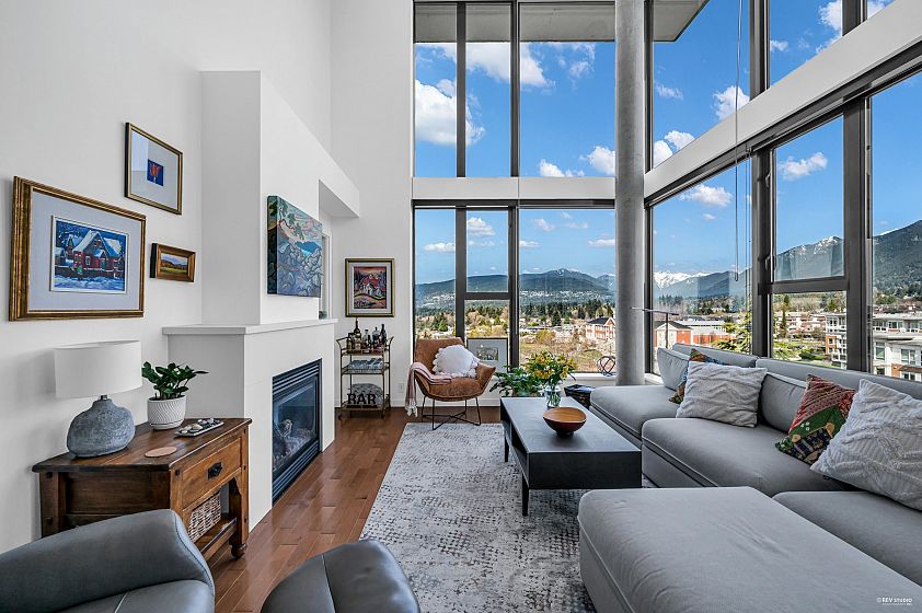 Experience elevated living in this one-of-a-kind 3-bedroom, 3-parking Penthouse in the heart of Lower Lonsdale. Boasting over 2,200 sq ft of luxurious interior space across two levels plus 193 sq ft of outdoor terraces, this residence showcases panoramic views of the mountains, ocean & Lions Gate Bridge. The redesigned kitchen features premium appliances, sleek cabinetry & a large island perfect for entertaining. The main level offers expansive living & dining areas, a powder room, seamless access to the view terrace, & a spacious primary suite with spa-like ensuite & California closets. Upstairs, you'll find 2 additional bedrooms, a full bathroom & a stylish media lounge—perfect for guests, children or home office setups. Book your private showing before this rare penthouse is gone.