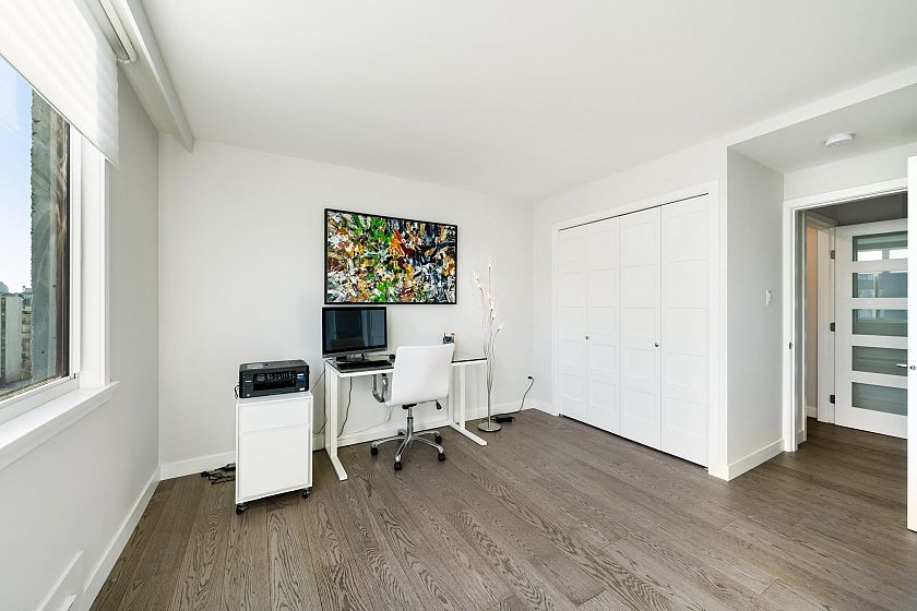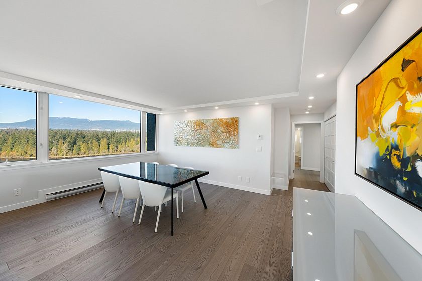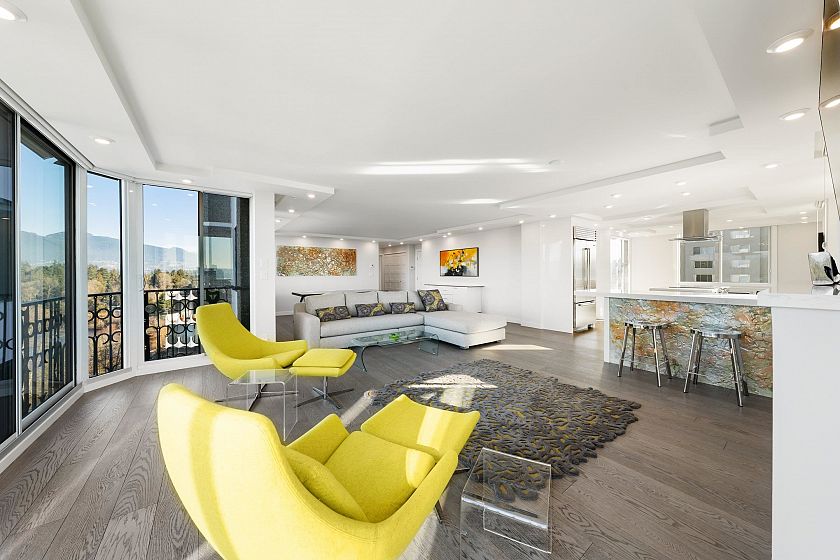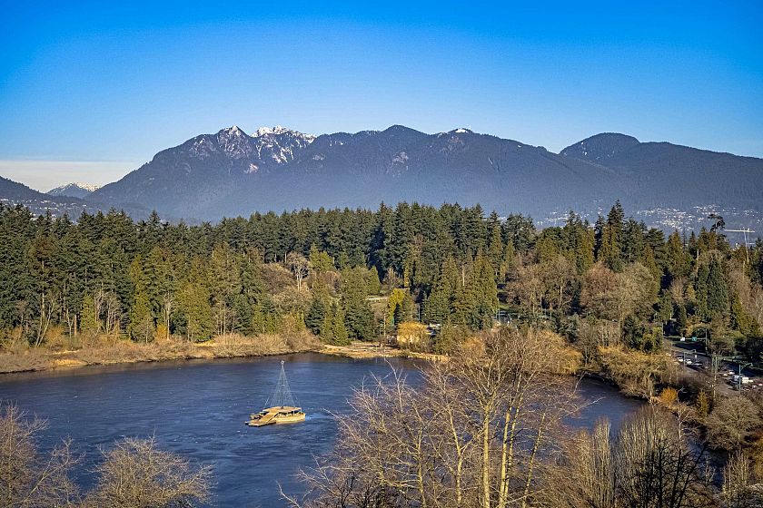 A stunning full floor residence at Lagoon Terrace is available on the market! This 3 bedroom, 2 bathroom home is perched above Lost Lagoon, offering breathtaking panoramic views of English Bay, the North Shore Mountain and Stanley Park The unit has been totally updated with no expense spared, featuring a kitchen with a high end appliances and a sub Zero fridge, spa inspired bathrooms with bathroom heated floors ,power blinds and beautiful hardwood floors throughout. The expansive living & dining areas are bathed in natural light, creating an open and airy atmosphere with unparalleled privacy, as the suite occupies the entire 10th floor with a private secure elevator entry. A rare find in the urban market! Includes 2 parking stalls in the underground parkade and a storage locker.