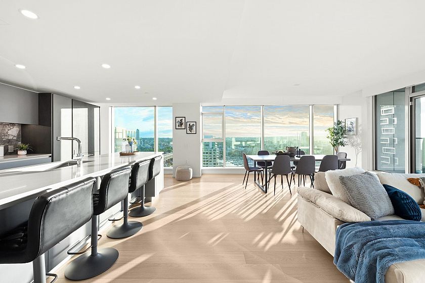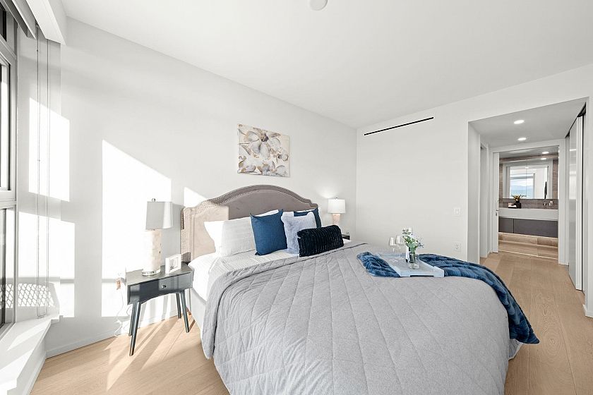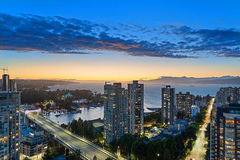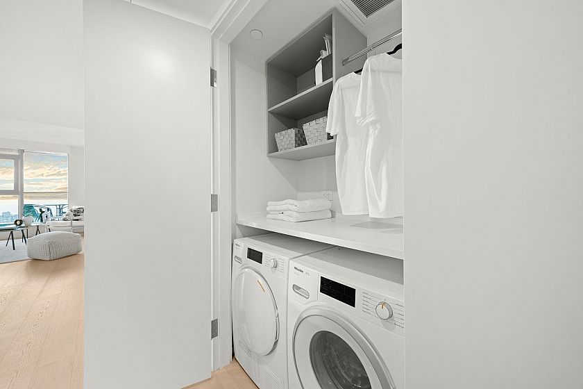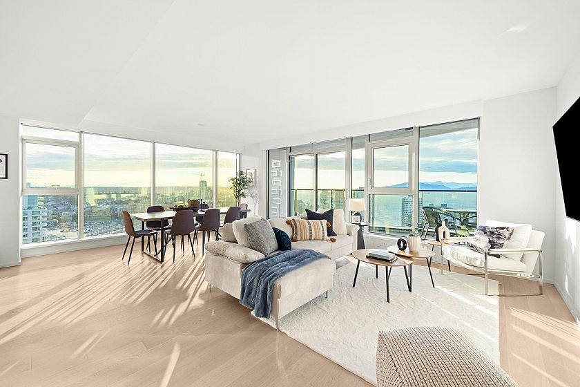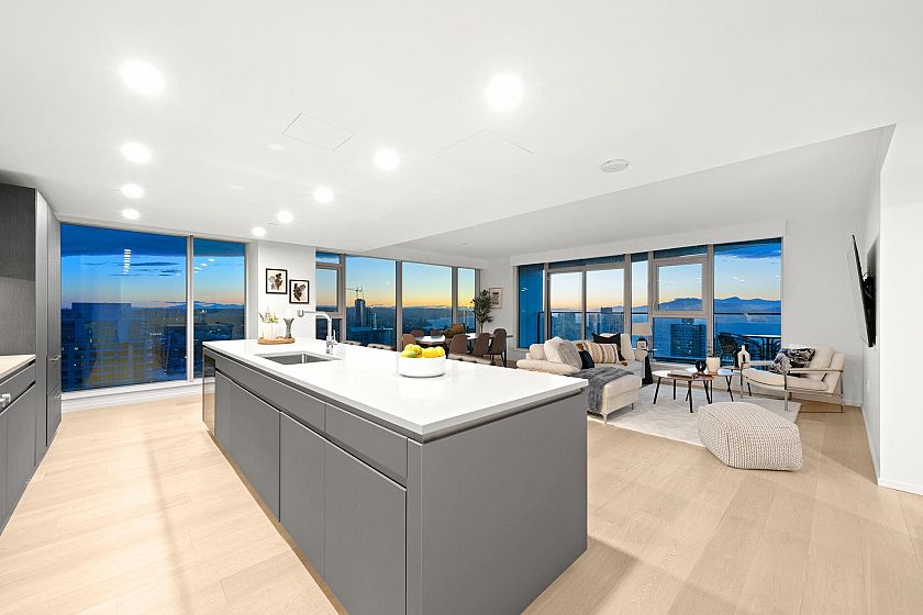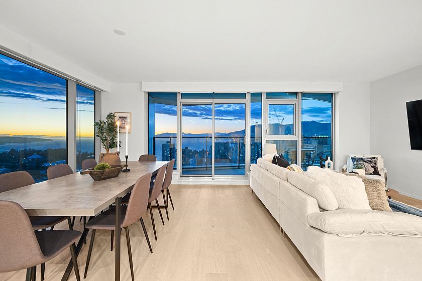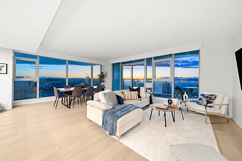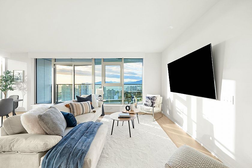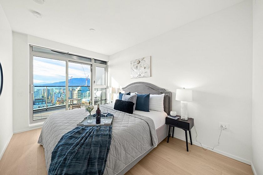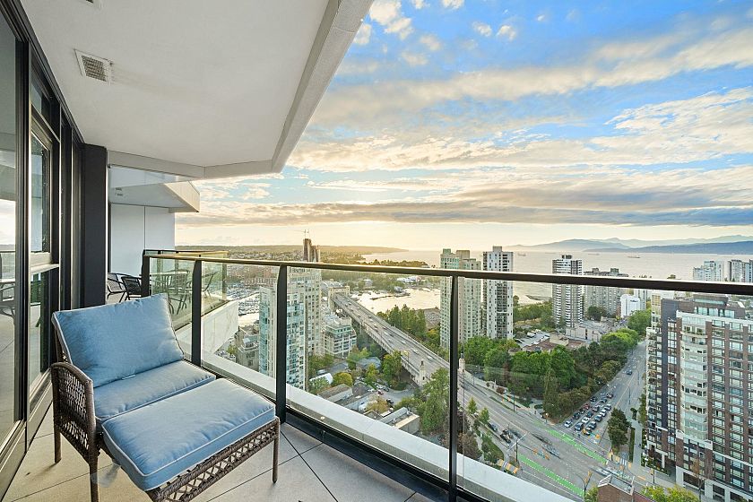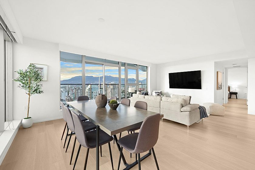 Welcome to Unit 2703 at The Pacific by Grosvenor. This 3-bedroom, 3-bathroom residence features radiant-heated bathrooms for a spa-like experience. Spanning 1,576 sq ft, the home offers floor-to-ceiling windows with serene waterfront views of the ocean, mountains, and city, capturing stunning sunrises and sunsets. The kitchen includes panel-ready cabinetry, Wolf appliances, soft-touch cabinets, a bar fridge, and built-in accessories in the cabinets and pantry. With 24-hour concierge, two parking spaces, a gym, and a social room, this home combines luxury and convenience. Steps from the seawall, beaches, Yaletown, downtown Vancouver, and shopping, it is the perfect blend of city living and spectacular views.