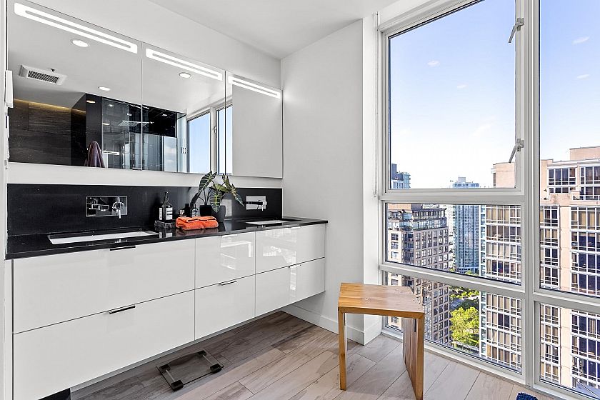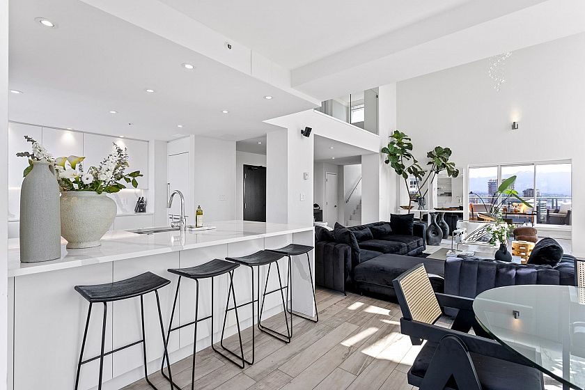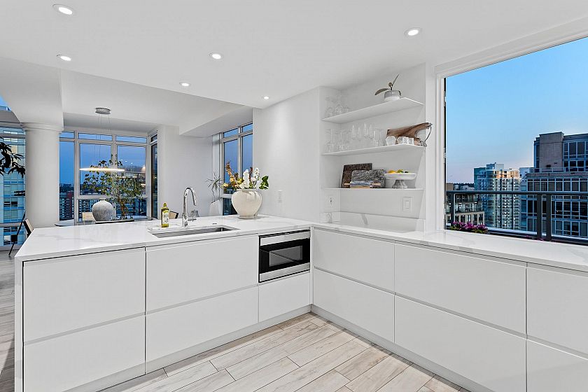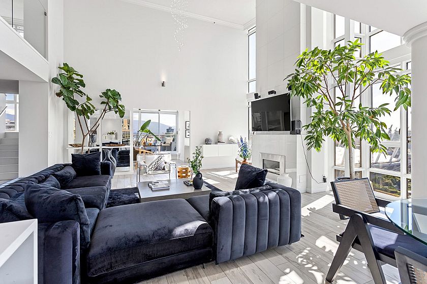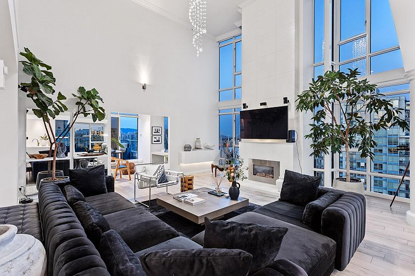 A truly rare offering, this stunning 2-level Penthouse occupies half of the entire 30th floor & boasts over 1,100 sq.ft. of panoramic wraparound patios with breathtaking ocean, city, & mountain views. With more than 2,000 sq/ft of fully renovated luxury interior, this residence is designed for elevated living. Step into a bright, open-concept floor plan featuring soaring 18-ft ceilings, expansive floor-to-ceiling windows, & sprawling, art gallery-style wall space ideal for collectors. The custom chef’s kitchen is equipped with top-of-the-line appliances & flows seamlessly to the indoor-outdoor serving bar & private hot tub patio—perfect for sunset gatherings. Located in the vibrant Yaletown District, just steps from world-class dining, the Seawall & Granville Island. Truly a 10 out of 10!