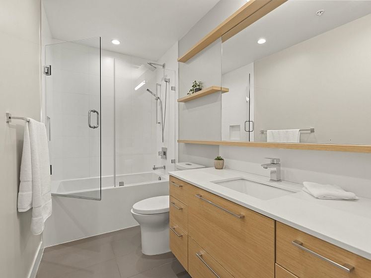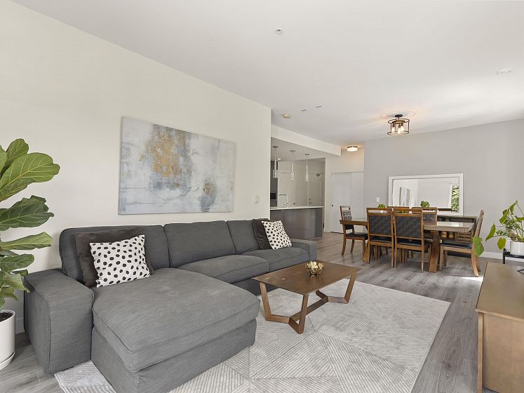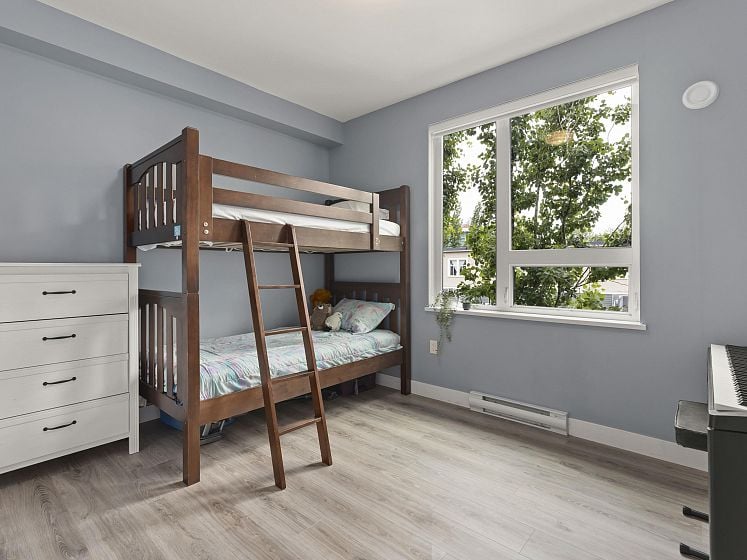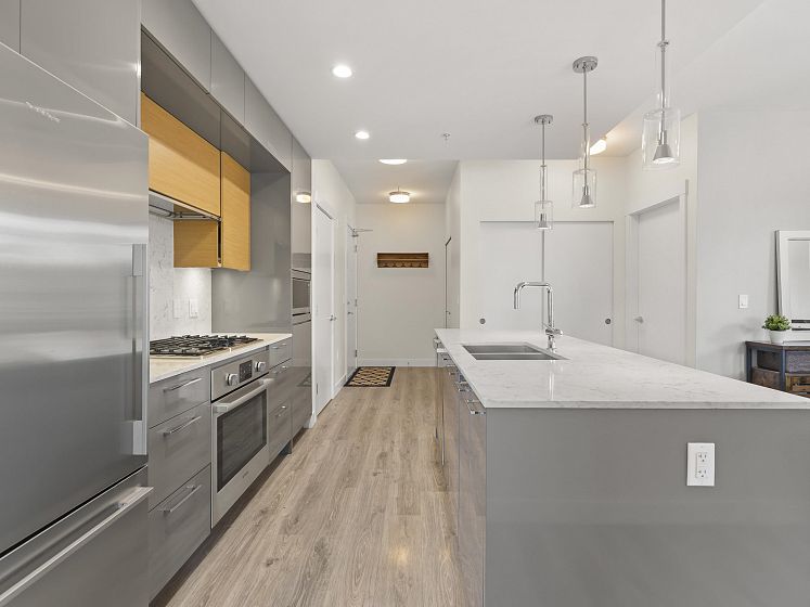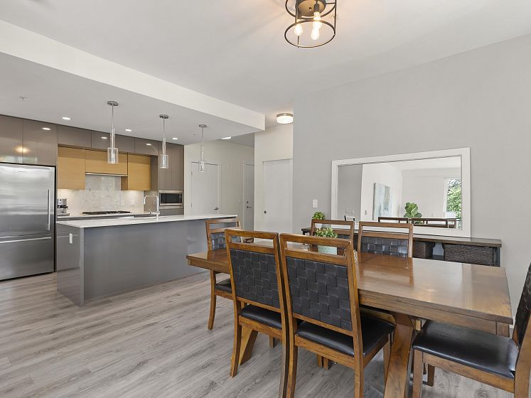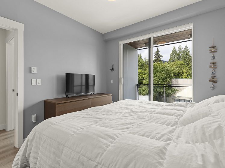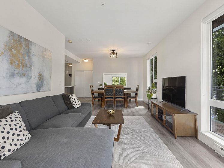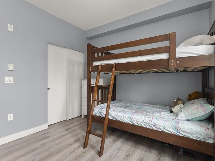 Walter's Place is the place to be in Lynn Valley! Floor to ceiling windows makes this 3 bed + 2 bath corner unit bright & welcoming. Fantastic layout- with a great flow from the foyer to the modern kitchen, lots of space for big family dinners in the dining room, & enjoy mountain views from your living room. 2 outdoor spaces- a balcony runs the length of the living space and then a private balcony off the main bedroom. Insuite Laundry, good closet space, incl walk through closet to ensuite. Well run & worry free + Pet friendly building + 2 parking.