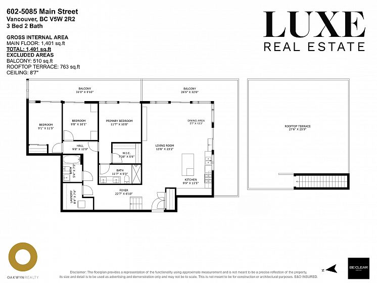 Welcome to EASTPARK by Boffo Developments, this stunning south-east facing 3-bed PENTHOUSE offers breathtaking city and mountain views and is the largest in the building. Expansive 763 sf private rooftop deck plus a 510 sf wrap-around balcony on the main-floor. Over-height ceilings, hardwood flooring throughout, and a bright, open-concept living, dining, and kitchen area with modern finishes. Entertainer’s kitchen features a Bosch gas cooktop, integrated fridge, polished quartz countertops, and a large island. Generously sized bedrooms, including a primary suite with a walk-in closet and spa-inspired ensuite, plus a laundry room with additional storage. Steps from Main Street’s restaurants and shopping, Elizabeth Park, Riley Park, and Hillcrest Community Centre. 2 PARKING SIDE BY SIDE