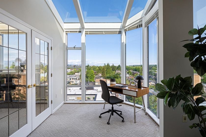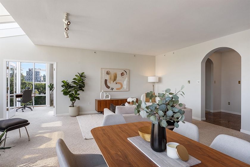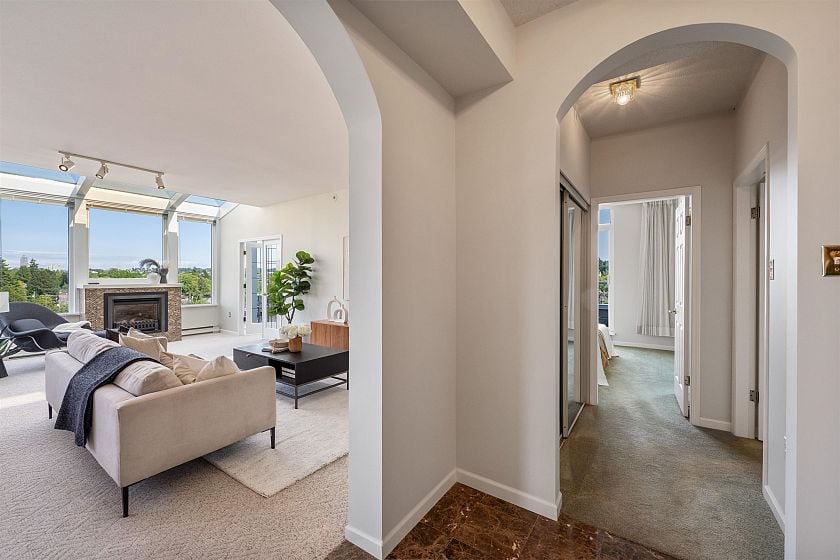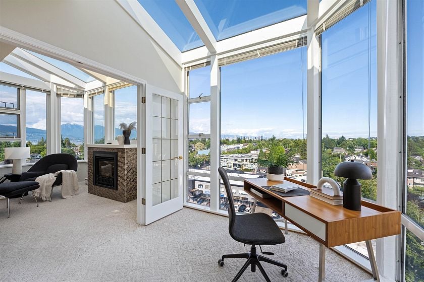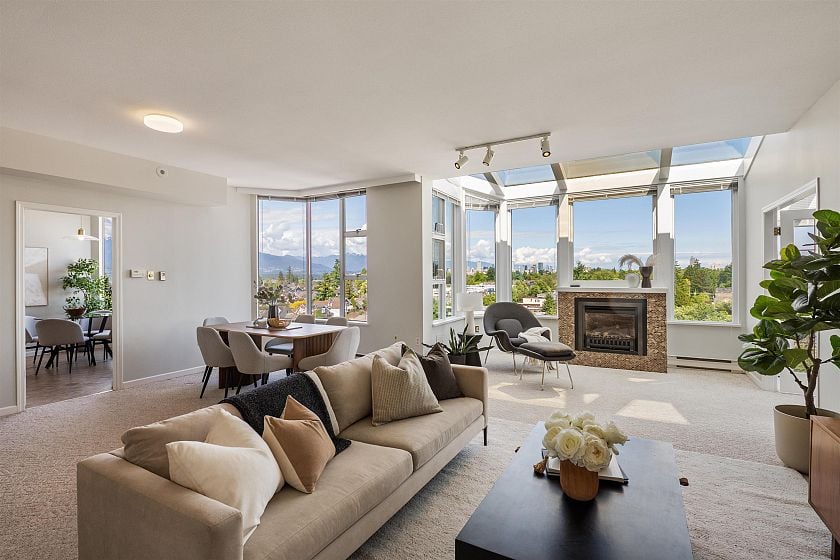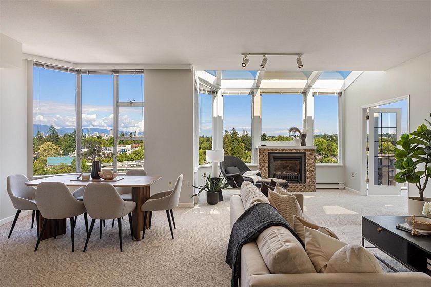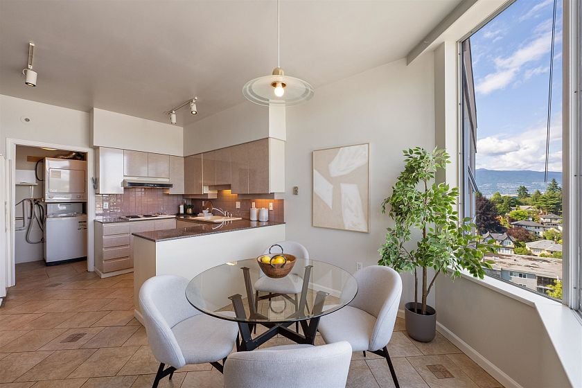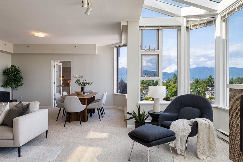 1700 sf PH all on 1 level! This home offers incredible natural light all year round w/quintessentially Point Grey vistas of the North Shore mountains, lush trees of Kitsilano & peekaboo water views. A/C lets the sun shine in without the heat. The sense of scale in the property is immediate: house-sized proportions, generously sized rooms, & 9' ceilings throughout mean you can move in without downsizing all of your house sized furniture, or curate a brand-new collection. Whether Point Grey has been your stomping ground for decades, or an exciting new place to call home, you are steps from Jericho Village, Jericho Tennis Club & RVYC. A refined canvas, offering the scale, setting, & potential to become something truly exceptional. 2 parking & 1 locker included.