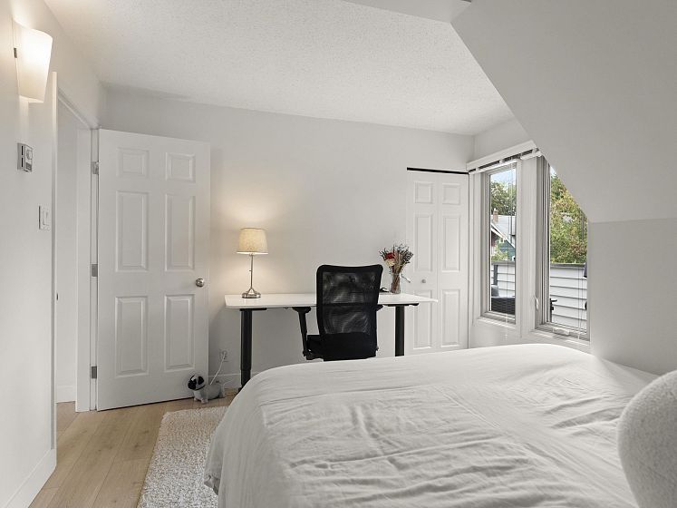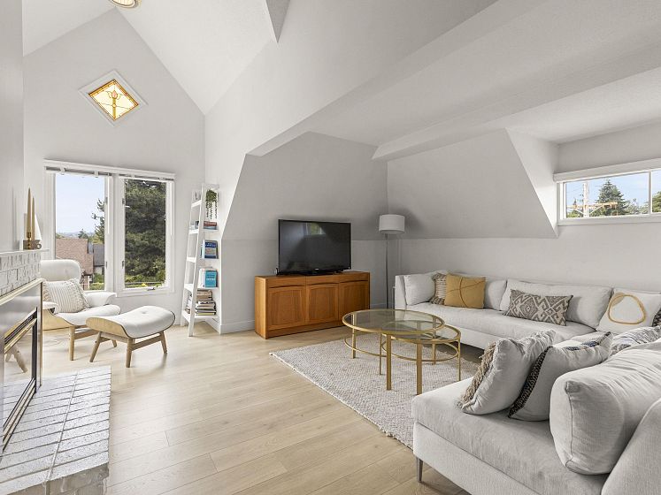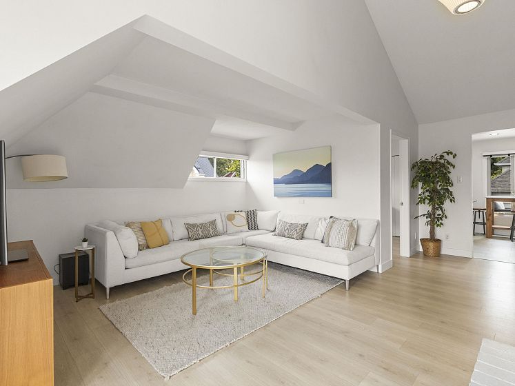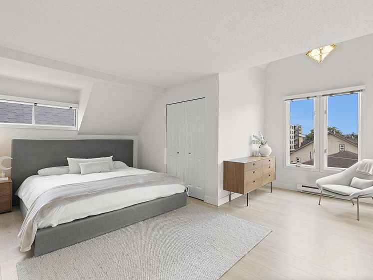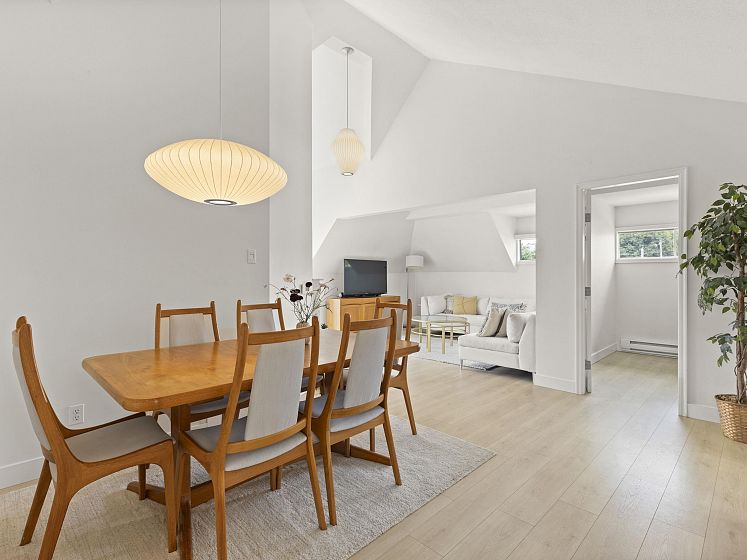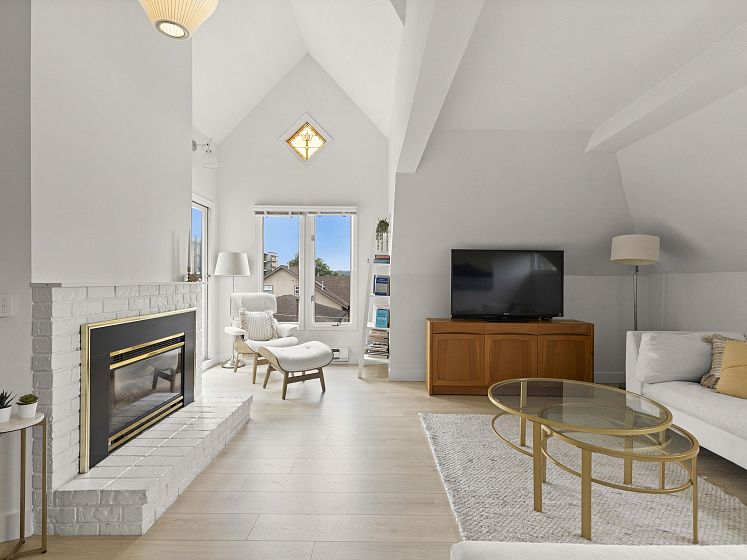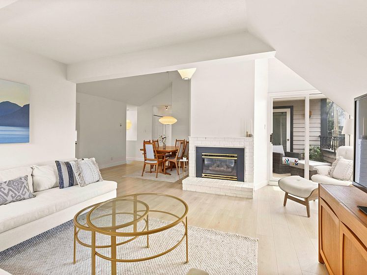 "North of 4th" - one of Vancouver’s most coveted neighbourhoods, this top-floor 3 bed, 2 bath townhome offers over 1,512 sqft of beautifully refreshed one level living space plus a 170 SF private & spacious patio off of the kitchen as well as a cozy patio off the living room & primary suite. Featuring updated floors, appliances, washer/dryer & gas fireplace. The home is filled with natural light with multiple gorgeous skylights, vaulted ceilings &west-facing exposure. All living areas are on one level, accessed via indoor stairs for added privacy. Includes a private single garage, plus ample street and permit parking. Pet-friendly and rental-friendly in a well-managed, proactive strata that has been freshly repainted. A rare find in a prime location!