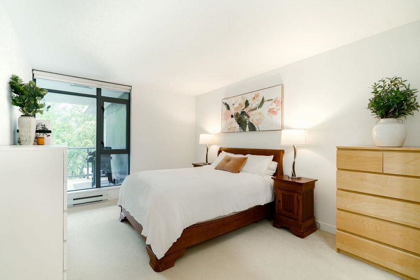 Welcome to Tapestry by Concert Properties - where quality meets an unbeatable location! This bright 3 bed & den + 2 bath home sits on the 4th floor of a solid, concrete mid-rise. Tucked on the quiet side of the building, this south-facing suite is soaked in natural light. A desirable & thoughtful layout w/over-height ceilings offers you plenty of space to live. Enjoy an open-concept kitchen, living & dining area perfect for slow mornings to large dinners w/family & friends. The spacious primary bedroom features a walk-in closet & ensuite, while 2 other generously sized bedrooms are perfect for kids, guests or full office setup. BBQ year-round on your private, covered balcony overlooking the trees & the park below. Walk to VGH, the Canada Line & Douglas Park. 2 side x side pkg included.
