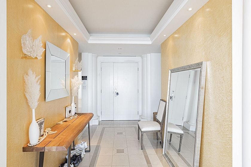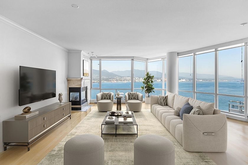 A prime waterfront residence in the city! Over 2,800 sqft of magnificent living space. Gorgeous panoramic views of Coal Harbour, Mountains and the city. Spacious living room w/stunning views, solarium off of kitchen, large kitchen featuring Bosch & Sub-Zero appliances, spacious dining room (or family room) off of kitchen. Master bdrm suite has a stunning 6 pc master bath & separate dressing room, plus two additional 2 guest bdrm both with ensuites. Two large storage areas at entrance and near bdrms. Spacious laundry room. Secured underground parking, 3 stalls (2 gated, one open) plus caged storage locker.