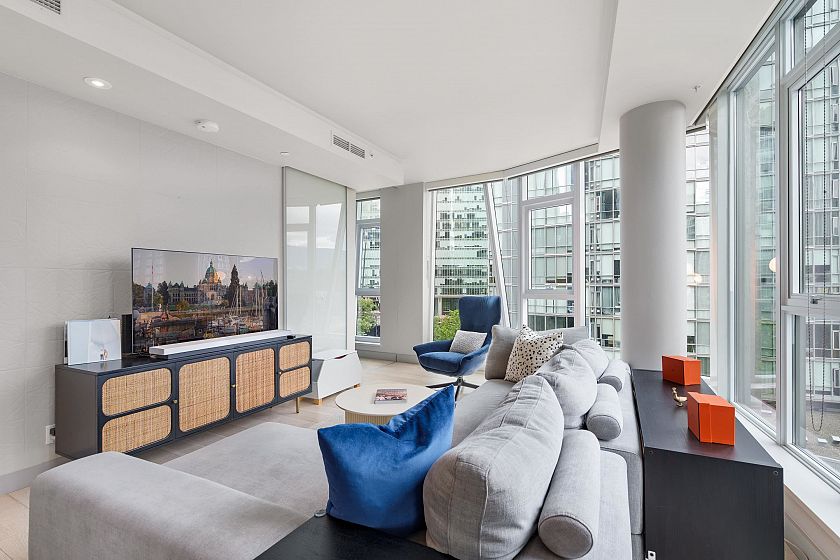Upsize—or downsize—in style with this rare 3-bedroom corner home at West Pender Place. Ideally located in one of Vancouver’s most desirable neighbourhoods, just steps from the brand-new elementary school. This private, elegant residence offers floor-to-ceiling windows, a spacious harbour-view patio, Gaggenau appliances, oak flooring, geothermal A/C, and two EV-ready parking stalls. Enjoy resort-style amenities including a pool, sauna, steam room, gym, and outdoor terrace. A standout Coal Harbour opportunity.
