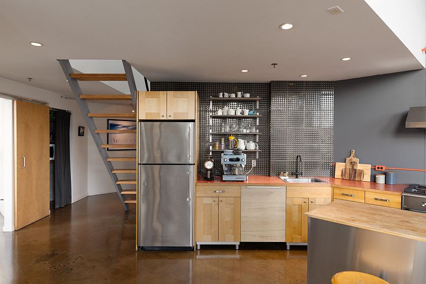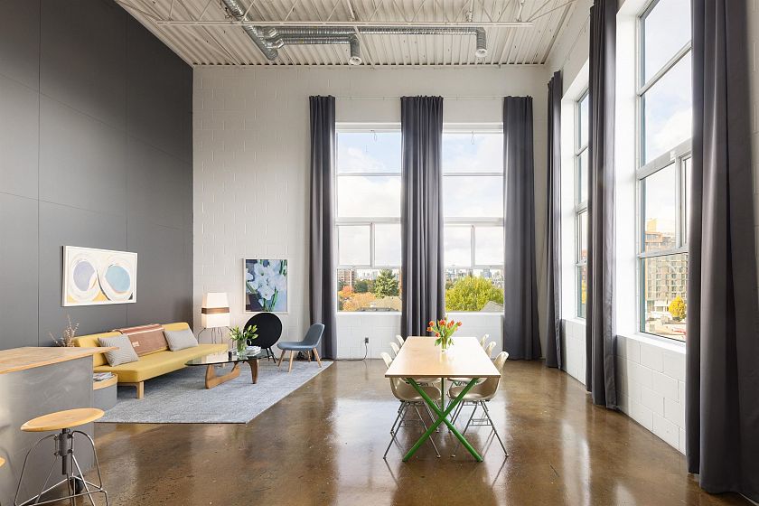 Coveted NW PENTHOUSE, 2-level WORK-LIVE loft at the "Workshop", a concrete building with a decidedly New York feel on the edge of vibrant Strathcona. Soaring 18'4" ceilings with full height windows on the West and North sides offer stunning downtown & mountain views over a quiet tree-lined street. The perfect combination of open space and industrial style in this spacious 1800sf live-work loft. The kitchen is outfitted with gas range and large movable island. A/C (newer heat pump) & dual heating system keep this space comfortable year round. In-suite laundry, 2 secure parking and tons of in-suite storage. The Workshop is a well-cared-for, built-to-last, rainscreened building with new roof & durable metal exterior. Call for your private showing.