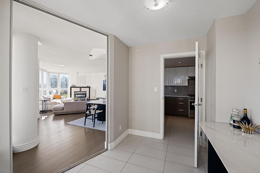Welcome to the Columbus and this very rare 1650sf 'true waterfront' sunny corner unit! Enjoy incredible views from every room of this Fully Renovated, Air Conditioned unit. Amazing floorplan with 3 bedrooms, 3 bathrooms, and a den. Generous living and dining area, perfect for entertaining. Gourmet Kitchen with gas cooktop, S/S Appliances, and ample cabinetry. Motorized blinds, wide plank Engineered Wood flooring, Full Size W/D, large balcony overlooking False Creek, and 2 parking stalls! The Columbus offers 24 hour Concierge Service, an indoor pool, a fitness center, hot tub, steam room, and a business center / meeting room. Perched on top of the seawall, on the quietest part of Marinaside Cres.you are close to everything! Experience Yaletown Living at it's best. Professionally