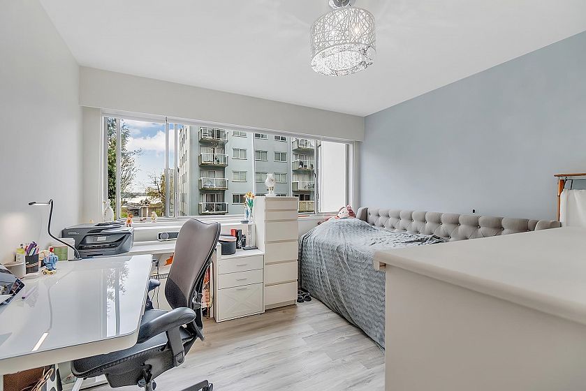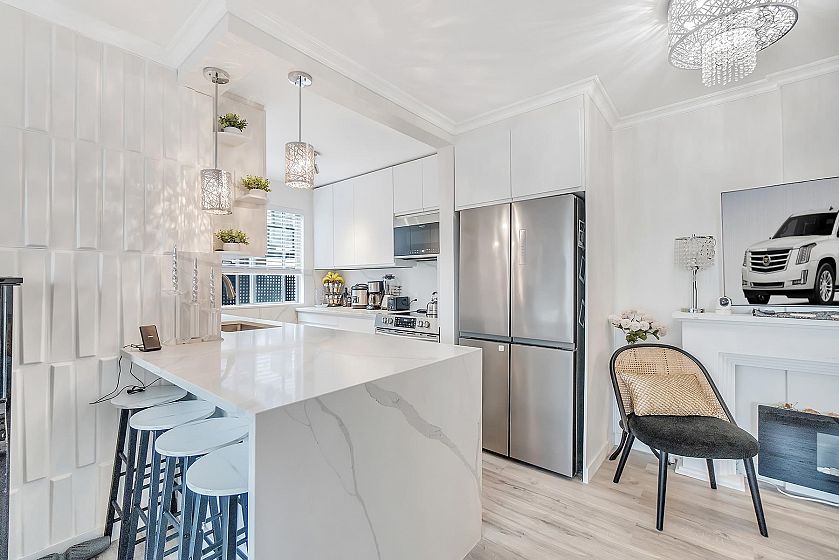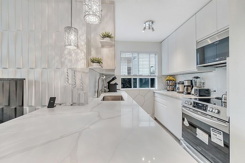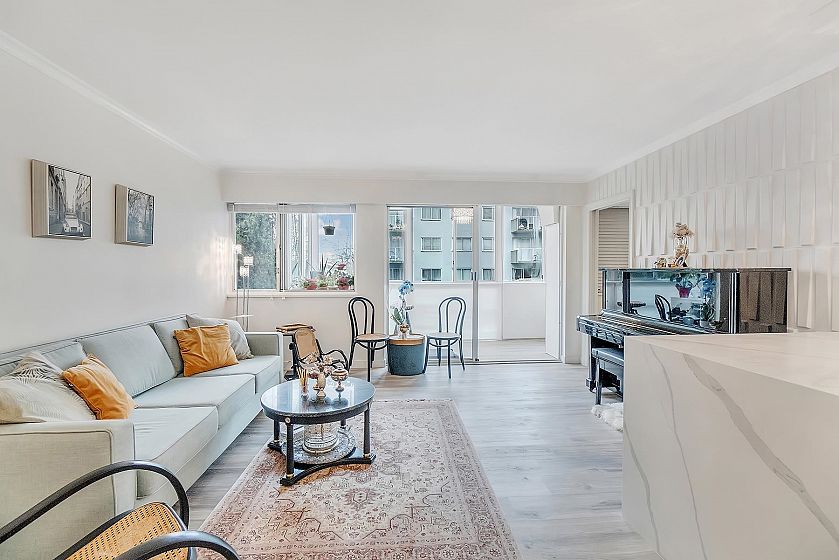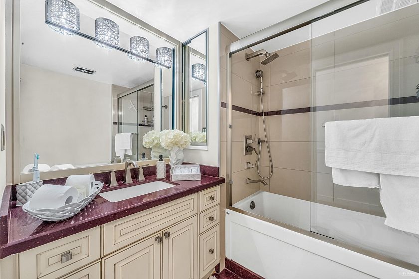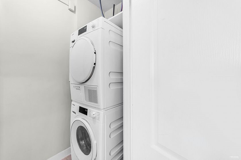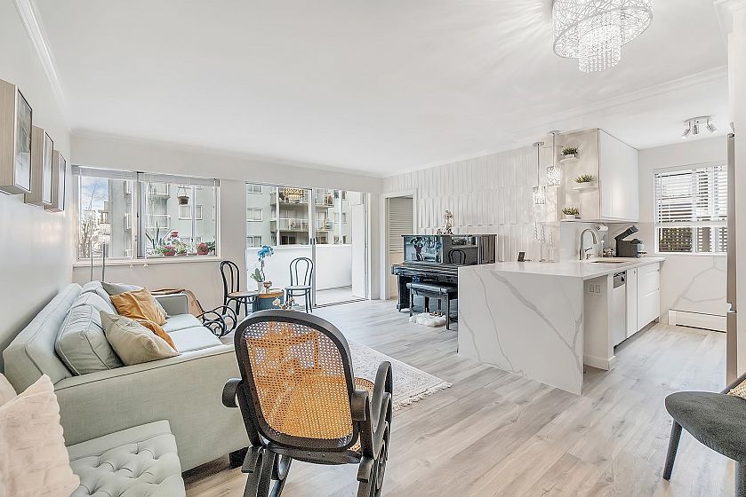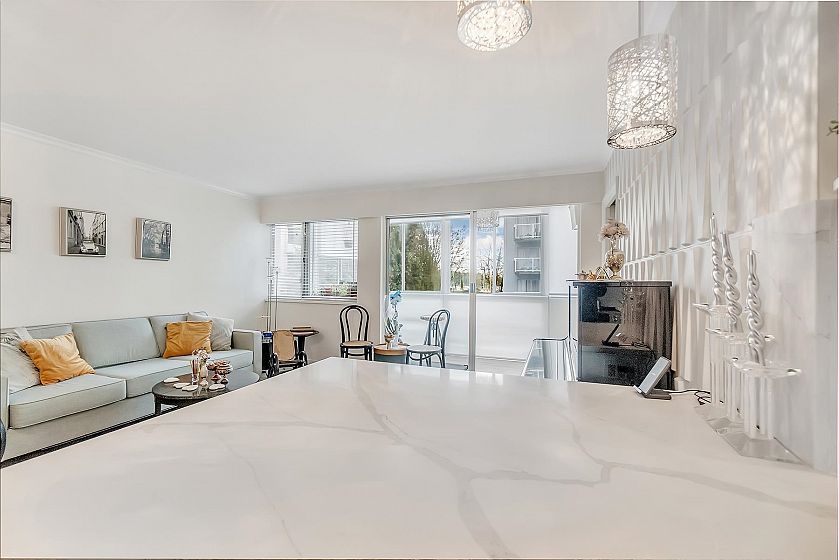 Enjoy all the amenities this great location has to offer with this completely renovated (in 2023), southwest-facing, 1,081 sq ft corner suite featuring 3 bedrooms and 2 bathrooms. Enter through an elegant foyer with a built-in closet and storage area, complete with a Miele washer and dryer. The sun-filled living room connects to a kitchen equipped with brand-new appliances, featuring a white countertop and breakfast bar. Relax on the large, private, covered balcony. The beautifully appointed roof deck offers stunning ocean and city views. This gorgeous suite is just steps away from all of Ambleside's restaurants, shops, top-ranked schools, and amenities. Enjoy an amazing lifestyle in West Vancouver! Pets and Rental are allowed with restrictions.