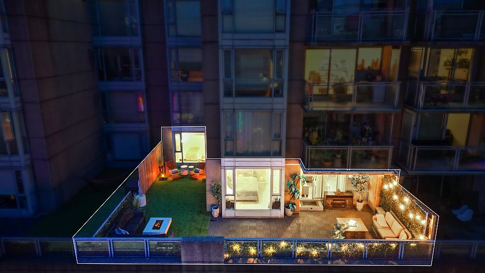 In a city that moves fast, this home lets you slow down. A rare downtown retreat that feels more like a house than a condo — offering almost 1,000 SF of beautifully renovated living and nearly 800 SF of private outdoor space that’s almost impossible to find anywhere in Vancouver. Enjoy cozy evenings by the fireplace or host summer dinners under city lights with mountain views as your backdrop. Fully renovated in 2019, freshly painted in 2023, with custom blinds, spacious bedrooms, and a flex room. Heat and gas included in fees. Step off the elevator into a peaceful courtyard leading to your private oasis. 5-star amenities include pool, sauna. Short-term rentals & pets allowed. $140K below BC Assessment.