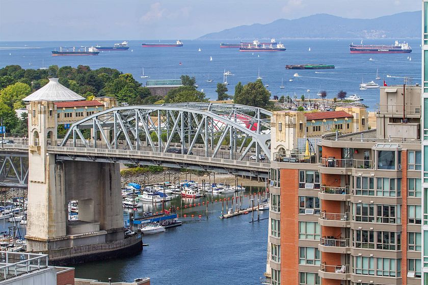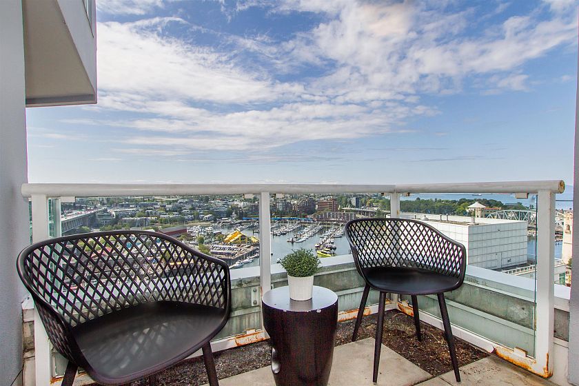 VIEWS!! Ocean, mountains, city and marina views await you from this sub penthouse unit! Spacious floorplan with 3 bedrooms and 2 full bathrooms are offered along with 2 separate balconies to observe the expansive 225 degree views! Fantastic location right near the aqua bus over to Granville Island or walking distance to the Beach, many restaurants, shops in Yaletown. A rare offering in this concrete built building and ready for your ideas to make this your home!