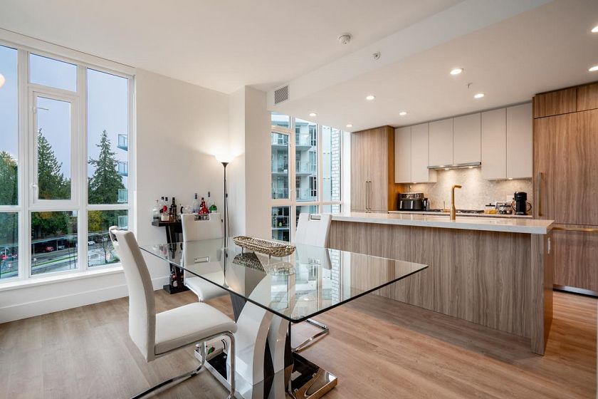 Townhome sized Explorer home with 3 bedrooms plus den, 2 bathrooms and a bright corner layout and floor to ceiling windows. A generous balcony extends the living space and there is plenty of in home storage. The kitchen features an extra long island, integrated fridge, gas cooktop and premium SMEG appliances, ideal for everyday family life and entertaining. Residents enjoy exclusive access to the Lynn Club with indoor pool, fitness centre, lounge and kids areas, plus a parking space and bike storage. All this at the edge of Kirkstone Park, steps to Lynn Valley Centre, schools and the North Shore trail network for hiking, biking and skiing.