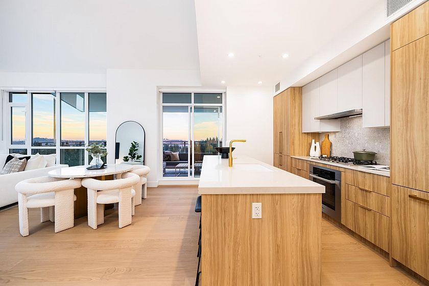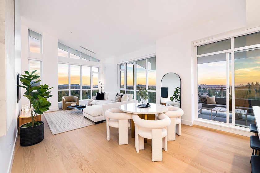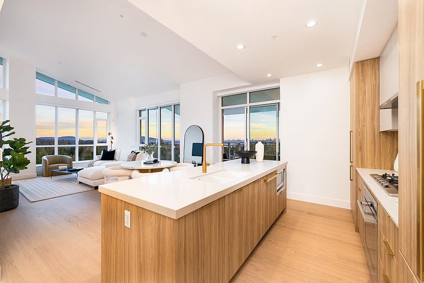Parkside by Mosaic, the prime south-facing Penthouse, with world-class amenities! This 3-bedroom plus office residence features soaring vaulted ceilings and expansive windows, filling the space with natural light and showcasing breathtaking city and water views. Designed for style and functionality, it includes a spacious sun deck, a private double-car garage with an EV charger, a third parking stall, and a 120sqft private concrete storage room. High-end finishes include a Miele appliance package, and quality craftsmanship enhance every detail. Set near Lynn Canyon, with easy access to shopping, hiking and biking trails, and the newly opened Amenities Building, which includes a pool, gym, sauna, steam room, meeting rooms and gathering spaces! The last and best Penthouse - don't miss it!
