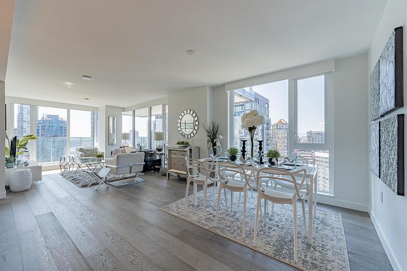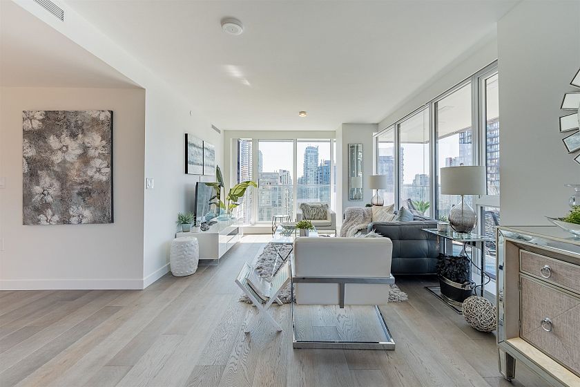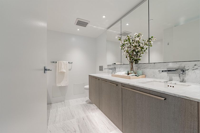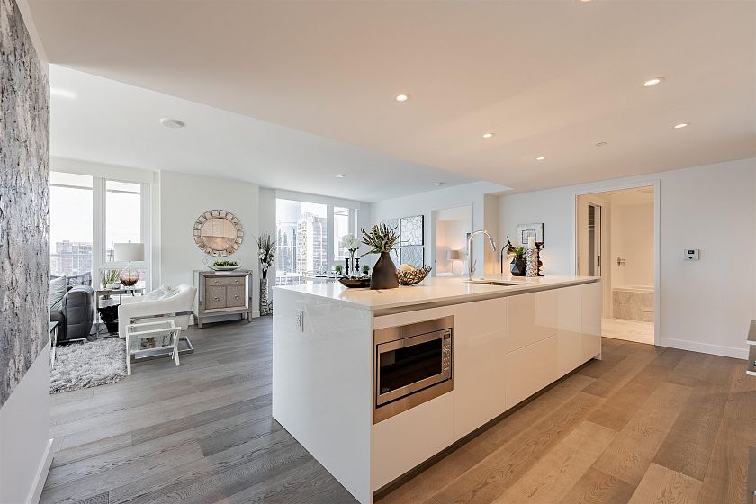 The most desirable floor plan with THREE bedrooms wrap around balcony (SW exposure) overlooking Emery Barnes Park, the City & some water views! This sky-home comes w/ smart technology such as Nuheat radiant floor heating & cooling, dimmable lights & smart learning thermostats. Stunning kitchen includes integrated Miele appliances, Italian cabinets & full slab marble backsplash. Flawless bathrooms boast marble floors w/ in-floor heating. Amenities incl 24 hr concierge & access to SKY LOUNGE equipped w/ Sky Fitness Centre, Yoga Room, lounge w/ full kitchen & entertainment area & outdoor roof top patio w/ loungers & BBQ terrace. Incl 2 parking stalls, storage locker & bike storage.