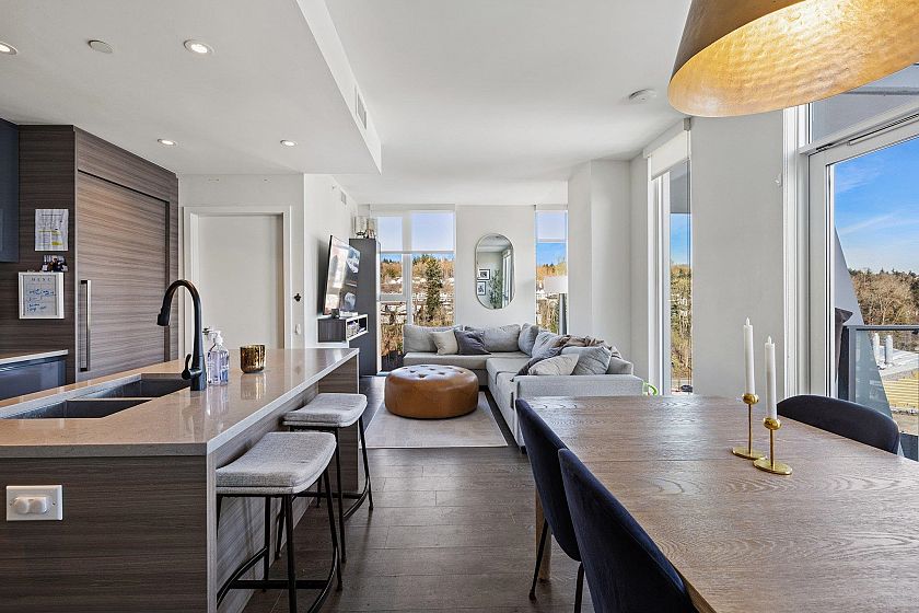 Welcome to AVALON 3 in the River District! This RARE 3 bedroom corner unit, w hardwood floors, on the 11th floor is a "must see". The beautiful floor to ceiling windows features magnificent northeast facing mtn & water views from multiple balconies. All bedrooms have blackout blinds. Heat pump has been replaced. 2 side-by-side parking & locker on P1. Building features: concierge, outdoor pool & hot tub, fitness center, amenities/ party room. 2 guest suites, & EV charging stalls. Steps to Riverfront walking path, outdoor playground, restaurants, coffee shops, Save-On Foods, Shopper's Drug mart, shops, banks, and much MORE! Pets/ rentals allowed w restrictions.