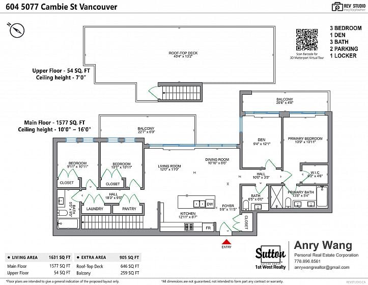 Location, location, location! Cambie Corridor PENTHOUSE! First time on the market, this stunning 3 bed + den, 2.5 bath home offers 1,576 sf of bright, spacious living plus a 600sf private rooftop and 2 balconies with QE Park & mountain views. Features include high-end Miele appliances, engineered hardwood, A/C, in-suite laundry, and soaring 16 ft ceilings in the master & den. The open living/dining area is perfect for entertaining. Prime location: across from QE Park, steps to transit, 10-min walk to Oakridge, close to Hillcrest Community Centre, Nat Bailey Stadium & Cambie Village. Only 10 min to Downtown, 15 min to Richmond. Comes with 2 parking + 1 locker. Open House Jan 18 2-4pm.