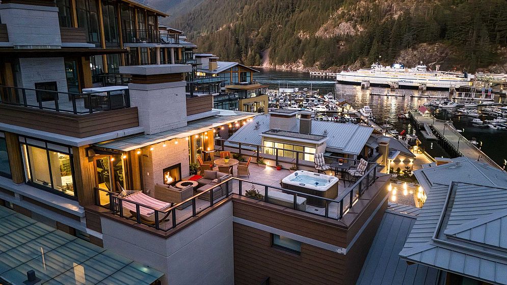 A one-of-a-kind, luxurious 3 bed, 3 bath 2,191 sq ft one level suite with a spacious, tiled walk-out 693 sq ft view deck. This amazing open floorplan seamlessly connects living, dining, kitchen and deck. The chef’s kitchen features European matte lacquer cabinetry, a large island and beautiful appliances. Enjoy the expansive deck with a fireplace and hot tub, plus a deck off the master bedroom. In addition the strata lot comes with access to a boat, boat house, kayaks and paddleboards. As well, there is a concierge, a gym, and just steps away from shopping, restaurants, Sewell's Marina, park, walking path, Horseshoe Bay amenities and more!