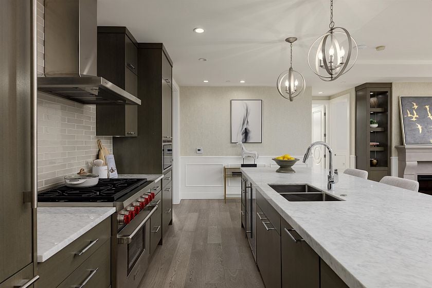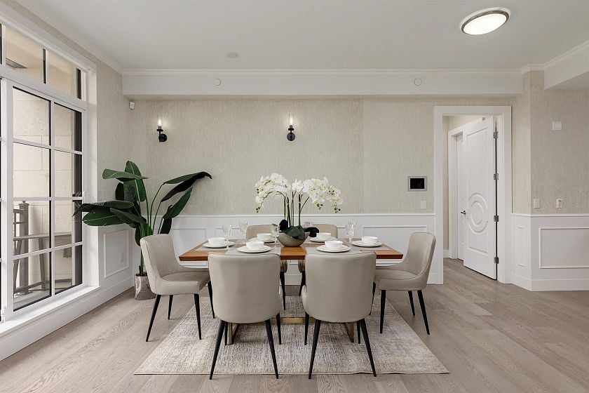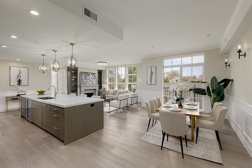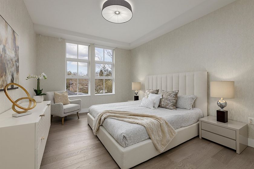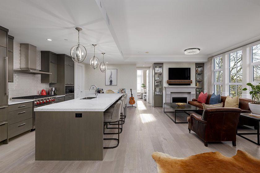 Welcome to the Luxury Residence at Chateau Laurier. Situated in prestigious First Shaughnessy, this rare 2,000+ sq ft, 3-bedroom home offers boutique luxury within an exclusive concrete building of only 11 residences. Thoughtfully designed interiors feature custom upgraded wall paneling, designer wallpaper, soaring 10-foot ceilings, and wide-plank hardwood flooring throughout. The chef's kitchen is equipped with premium Wolf and Sub-Zero appliances, seamlessly blending classic elegance with modern functionality. Additional highlights include central air conditioning, a gas fireplace, and a private gated two-car garage. Ideally located just steps from South Granville, top-ranked schools, and parks-this is a truly exceptional opportunity in one of Vancouver's most coveted neighborhoods.