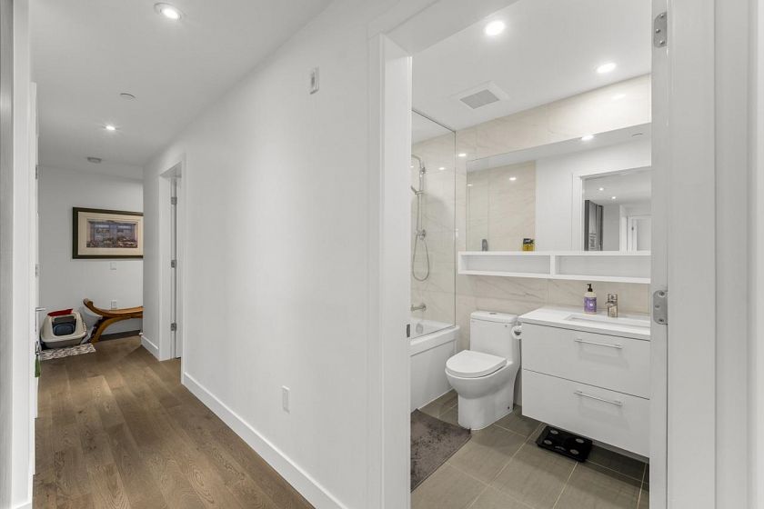 Welcome to Your Dream Condo by Townline! Introducing this stunning 3-bedroom, 2-bathroom with a den, offering 1164 square feet of luxurious living space. This east-facing gem features beautiful engineered hardwood flooring throughout, creating a warm and inviting atmosphere. Enjoy the comfort of high-end Gaggenau appliances in the modern kitchen, perfect for culinary enthusiasts. With air conditioning for those warm summer days, this quiet CORNER UNIT provides a serene retreat while still being conveniently located close to Queen Elizabeth Park and Oakridge Centre. School Catchment: Sir Williams Elementary and Eric Hamber Secondary.