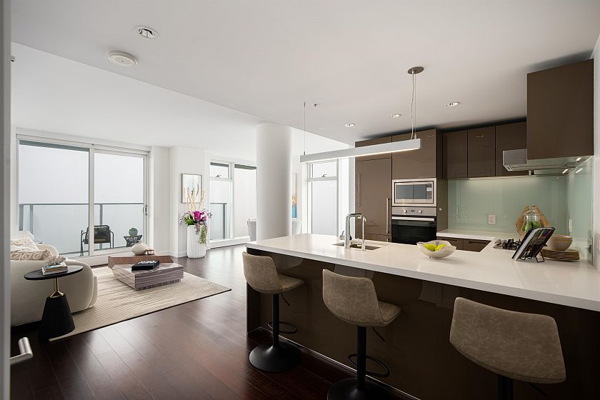 Experience luxury living at TELUS Garden by Westbank, a 53-story architectural landmark in the heart of downtown Vancouver. This spectacular 46th-floor CORNER residence offers 3 beds/2 baths, 3 private balconies with amazing panoramic VIEWS of the North Shore mountains, and the city skyline—perfect for enjoying fireworks from home. The unit features floor-to-ceiling windows, premium hardwood flooring, and a gourmet kitchen with Miele appliances, quartz countertops, and Kohler fixtures. Bright, natural light fills every room. 24/7 concierge, fitness center, outdoor pool, hot tub, and landscaped outdoor terraces. Two side-by-side parking stalls. Just steps from shopping, dining, and SkyTrain, this home combines convenience with elegance. https://youtu.be/EQJjj9MM0TQ