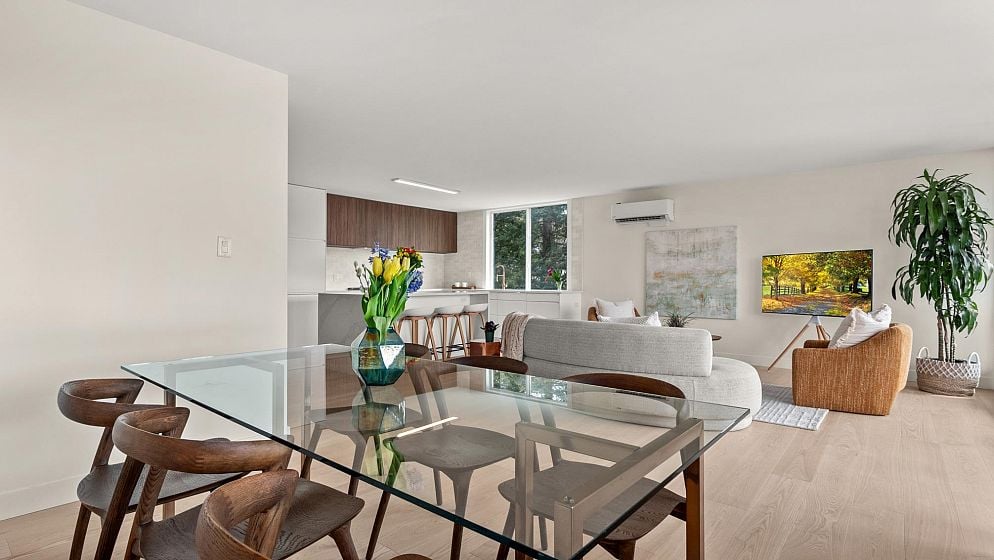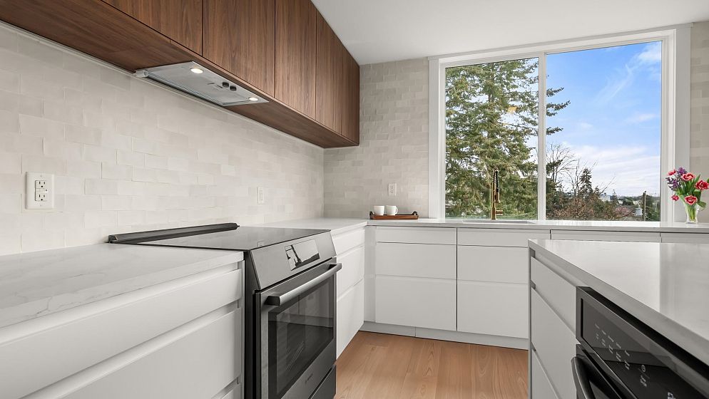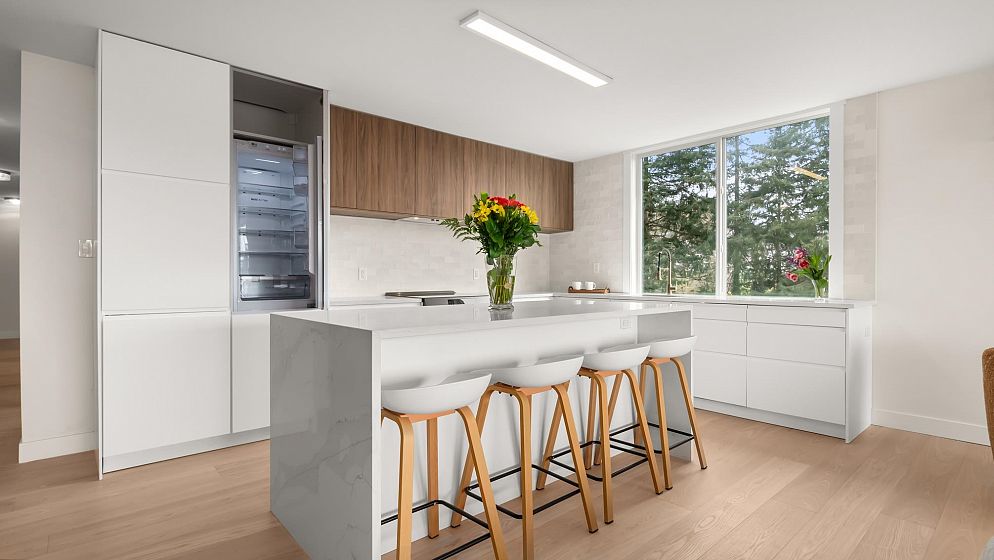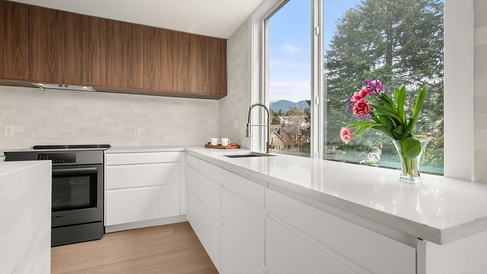 Imagine waking up to Mountain View's and then enjoying your morning coffee looking out over the ocean, Stanley Park, and the Lionsgate Bridge. This newly renovated three bedroom unit offers almost 1600 ft.2 of living space and is one of only two units per floor in this boutique strata building, Le Marquis. With a brand new kitchen featuring integrated appliances and high-end wood finishes the mid-century beginnings of this strata have been brought into the 21st-century through both character and luxury. There are two parking spaces, one in the underground, Parkade and another just off the parking ramp with a private garage door. Conveniently located only steps to Ambleside Beach, the seawall and many great restaurants.